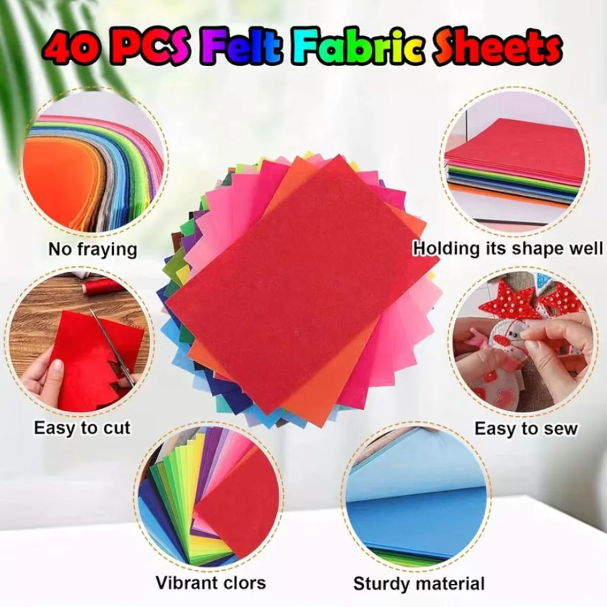 40PCS Colorful Felt Cloth With Different Specifications Smooth Texture Hand Washable Suitable For Cutting Sewing DIY Production