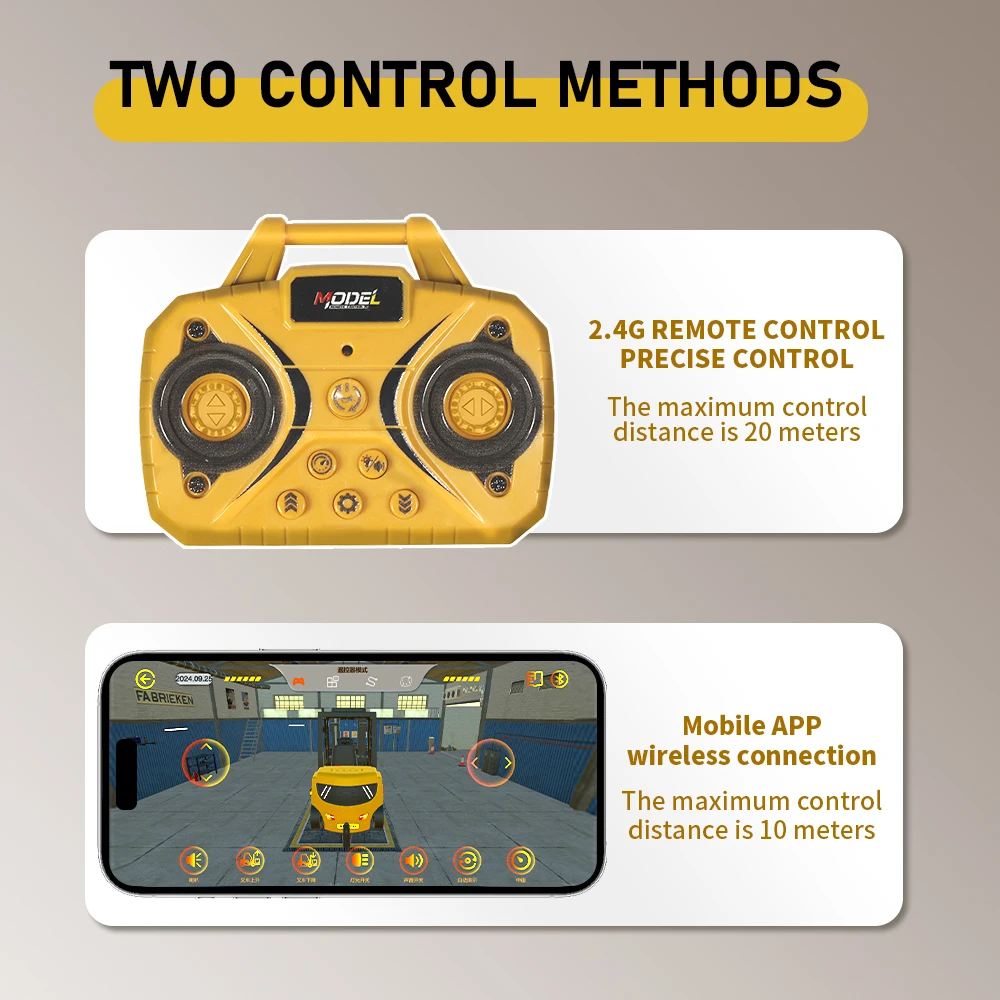 1:64 Bluetooth Remote Control Crane And Forklift two-in-one Desktop Mini Alloy Toy Car With Trailer Christmas Gift In Color Box