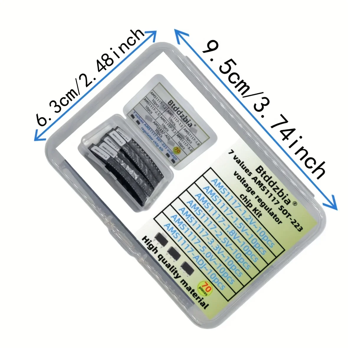 70PCS Voltage Regulator Kit AMS1117 SOT-223 AMS1117-3.3V AMS1117-ADJ AMS1117-5.0V AMS1117-2.5V AMS1117-1.8V AMS1117-1.5V 1.2V-5V