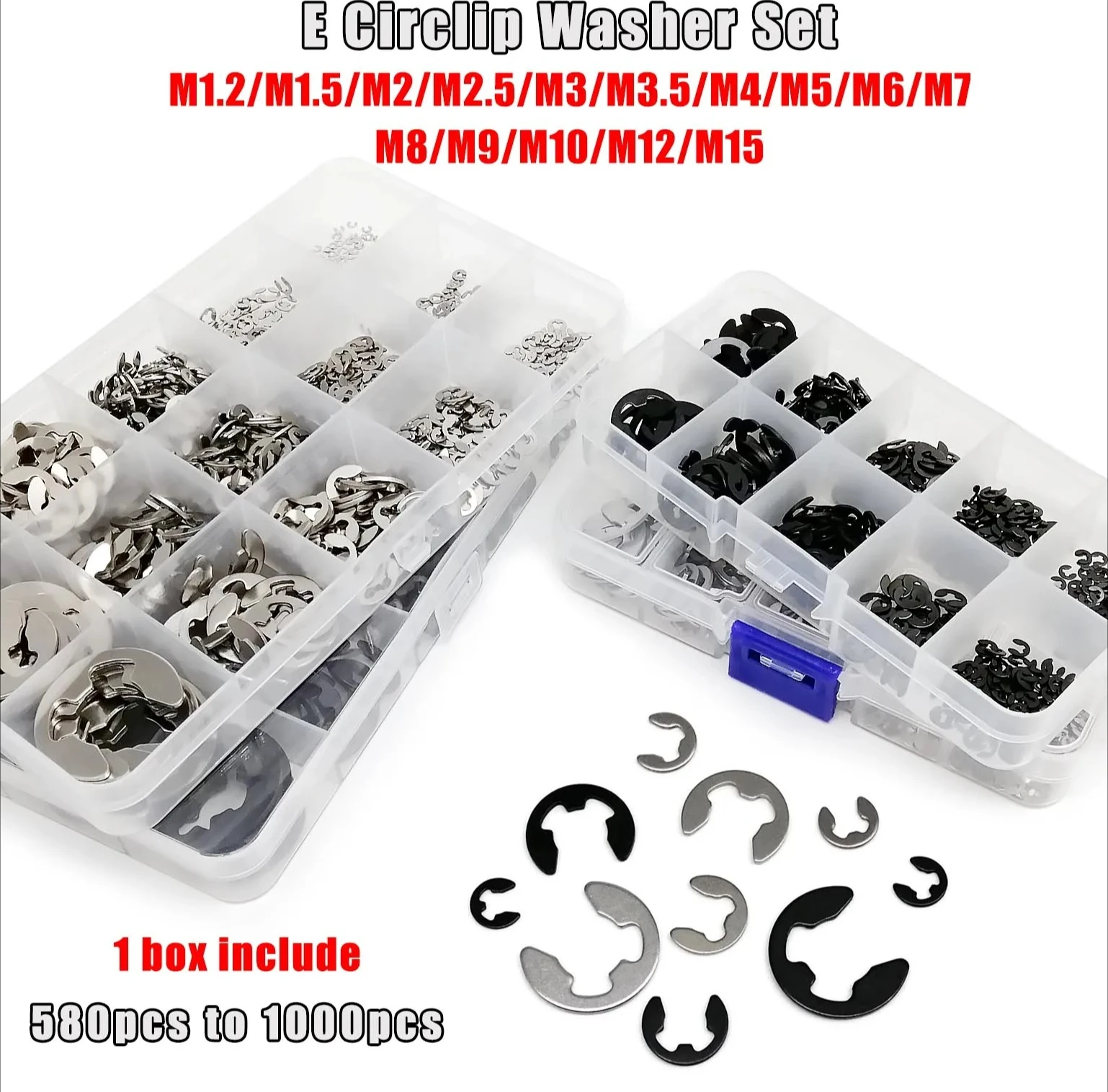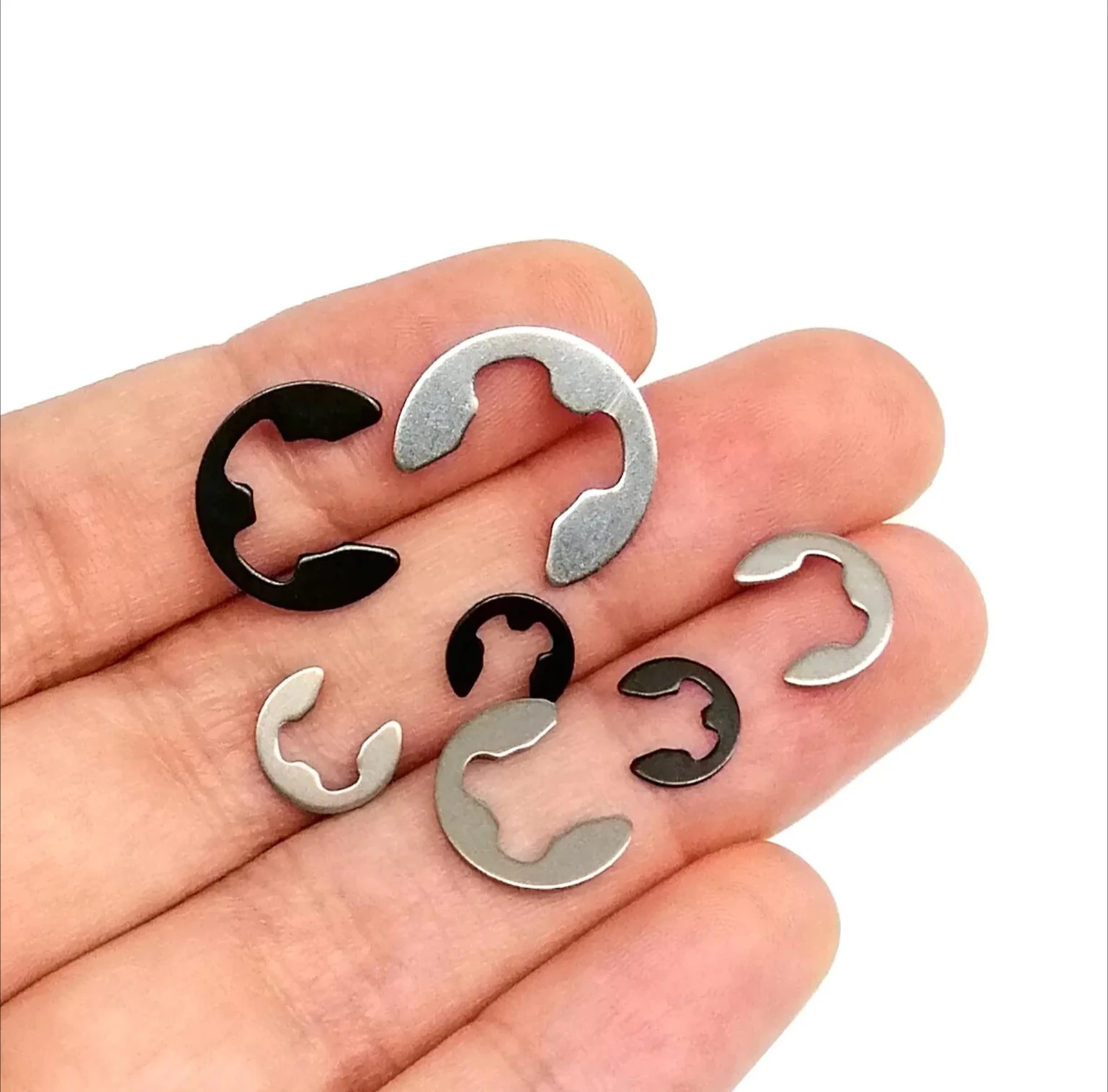1 set of black 65mn 304 A2 stainless steel mixed M1.2 to M15 kit E-type shaft bearing outer retaining ring snap washer