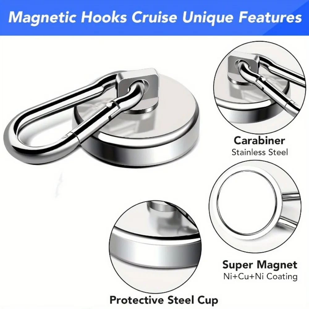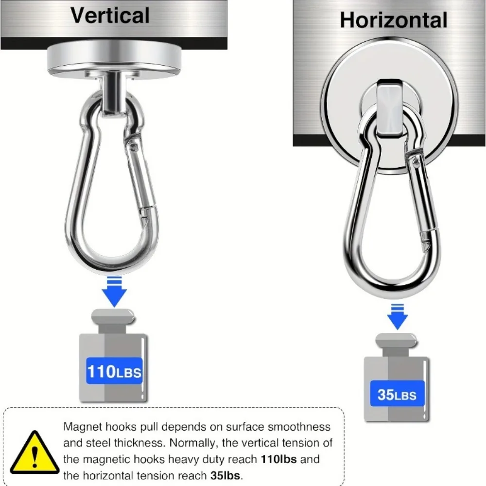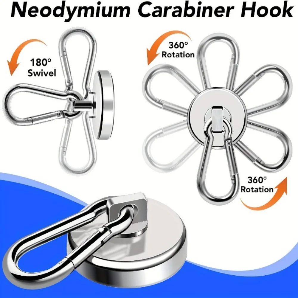 1/2pcs Ultra-Strong Magnetic Hooks Pro - 100lbs Heavy-Duty Neodymium Magnets with Carabiner and Swivel Ideal for Hanging Kitchen