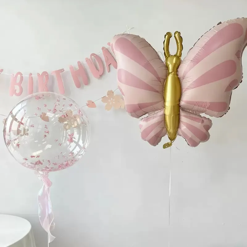 New 3D Butterfly Aluminum Film Balloon Forest Princess Style Children's Birthday Party Decoration Dreamy Wedding Decoration Cart