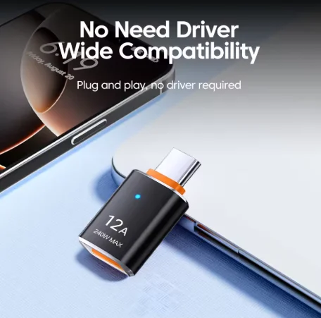 12A USB 3.0 To Type C Adapter LED OTG USB C Male to USB A Female Connector For iPhone 15 Tablet Notebook Android Phones Adapter