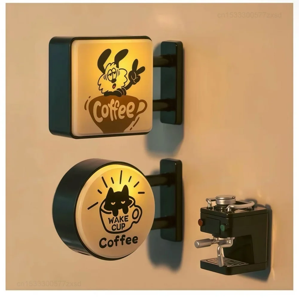 Retro Coffee Corner Creative Atmosphere Light Sign Fridge Magnet Magnetic Home Miniature Pegboard Coffee Shop Glowing Decoration