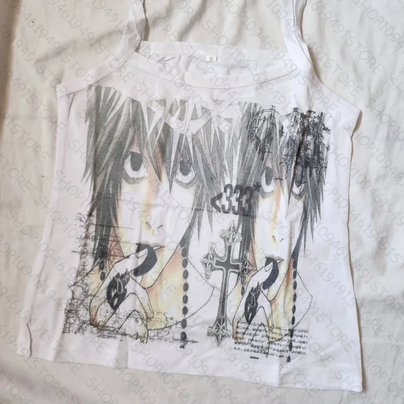 Vintage Y2k Style Clothes Letter Graphic Print Grunge Gothic Punk Slim Crop Top Camisole Female Tank Top Baby Tee 2000s Emo Girl