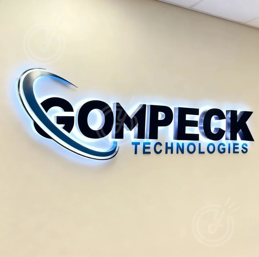 Letter Sign: Stainless Steel Backlit Custom 3D Channel Business Sign Halo Brushed Metal LED Logo Advertising Lit Indoor/outdoor