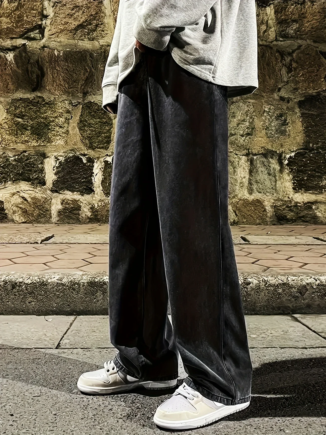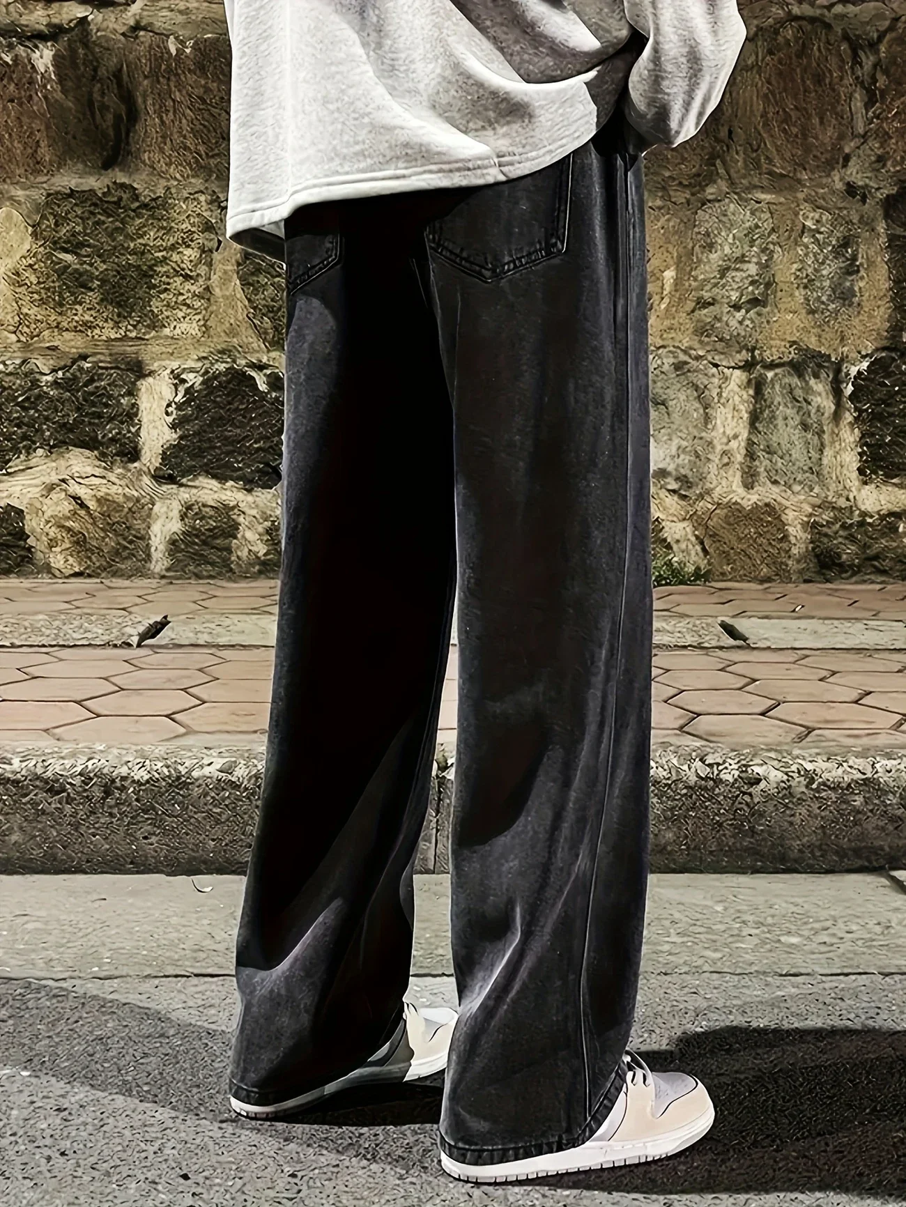 Men's Regular Fit Multi-Pocket Jeans - Street Style Cotton Blend Denim, Black & Gray, Non-Stretch, All-Season Wear, Classic Desi