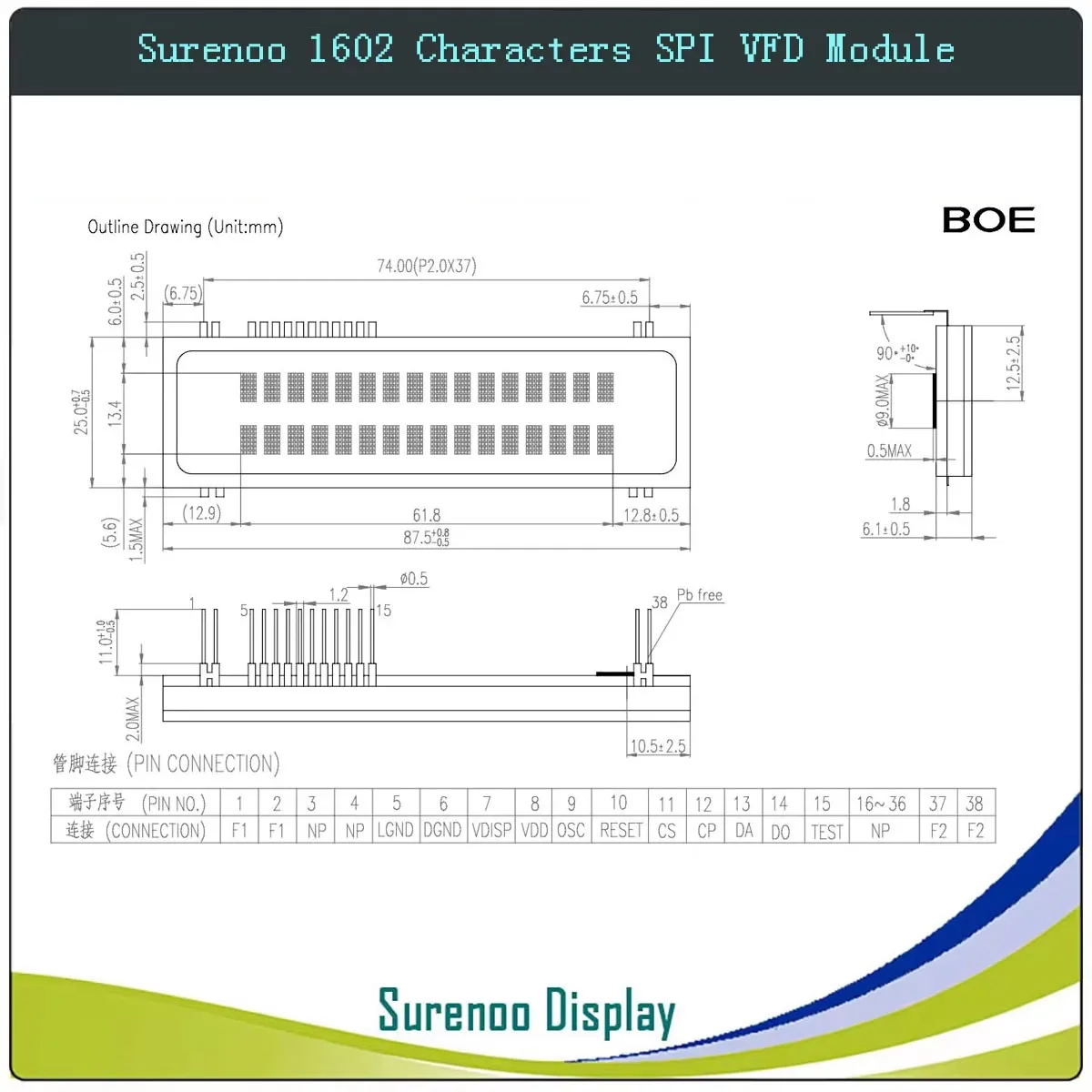 Surenoo 7P Serial SPI 1602 162 16X2 VFD LCD Module Display Screen for Arduino STM32 C51 Code