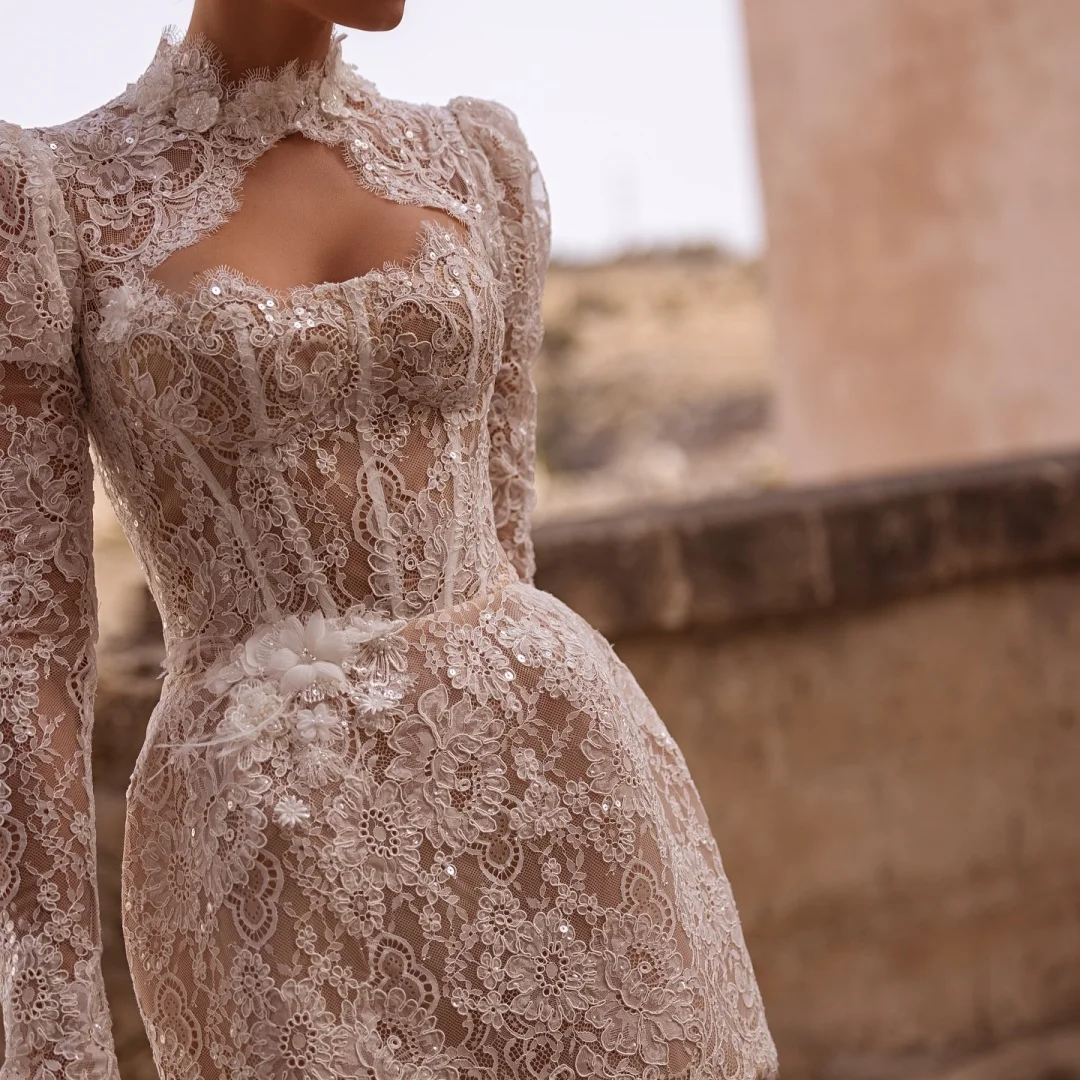 Amanda Customized White Sequins Strapless Long Sleeves Prom Dress Shoulder Pads vestidos de noche Mini Skirt Formal Evening 2025
