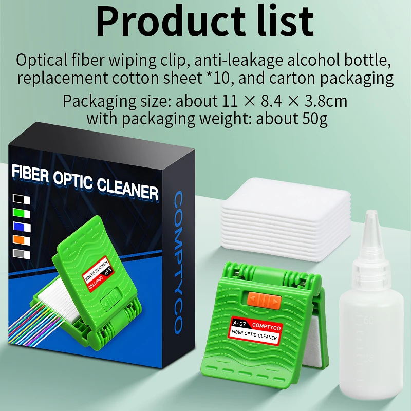 COMPTYCO A-07 Optical Fiber Core Wiping Clip FTTH Cleaning Tool Fiber Optic Cleaner With Cleaner Cotton/Alcohol Storage Bottle