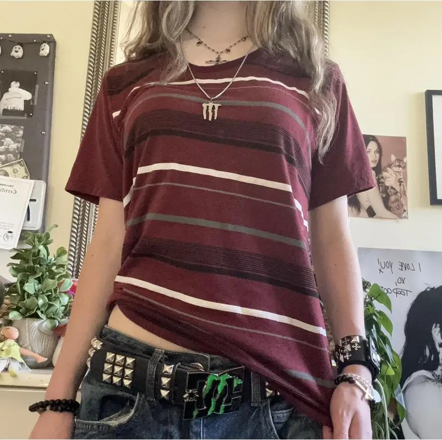 ALI shop - rezultati pretrage ... ... Womens Y2k Grunge Shirts Striped Baggy Crew Neck Short Sleeves Emo Tops 2000s Harajuku Vintage Teen Girls Goth Clothes ::: 2021 ::: :::