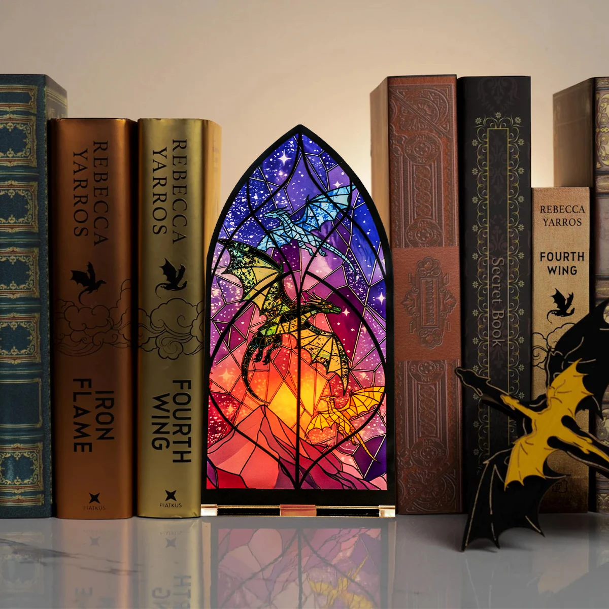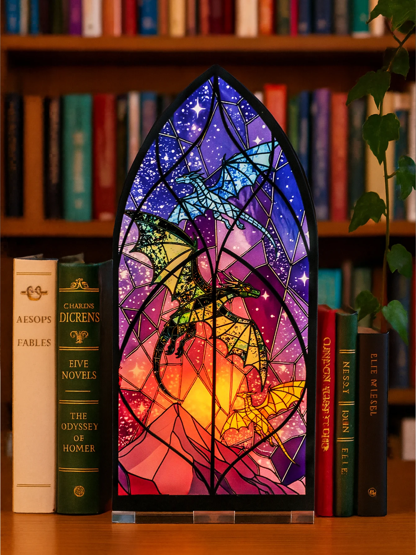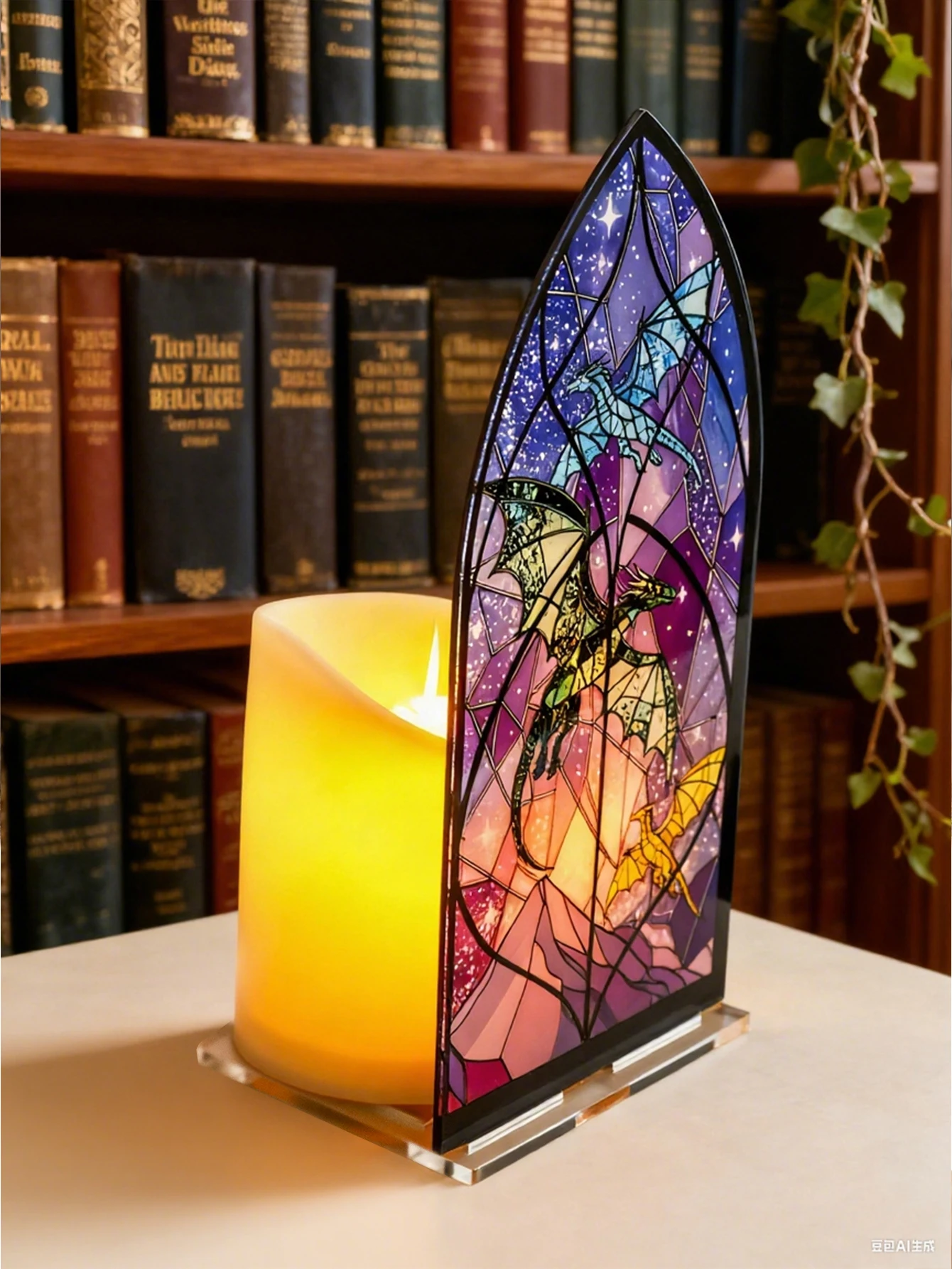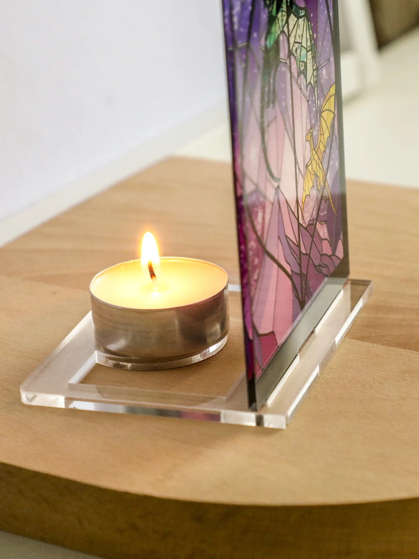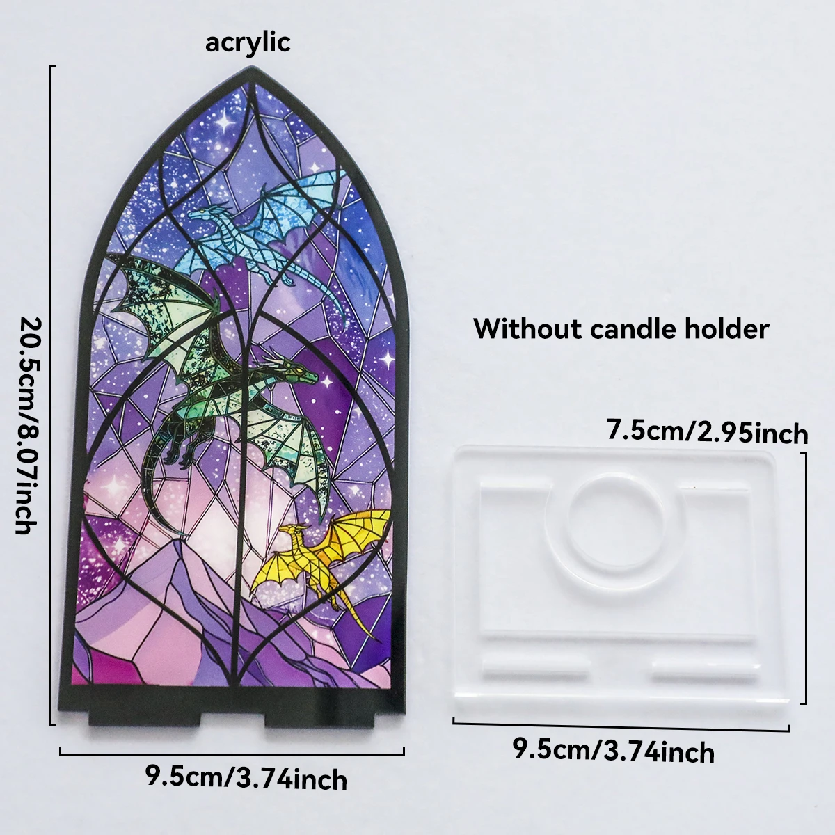 Acrylic Candle Holder Gothic Arch Design with Colorful Dragon & Starry Sky Pattern Tabletop Decor for Home,Living Room & Bedroom