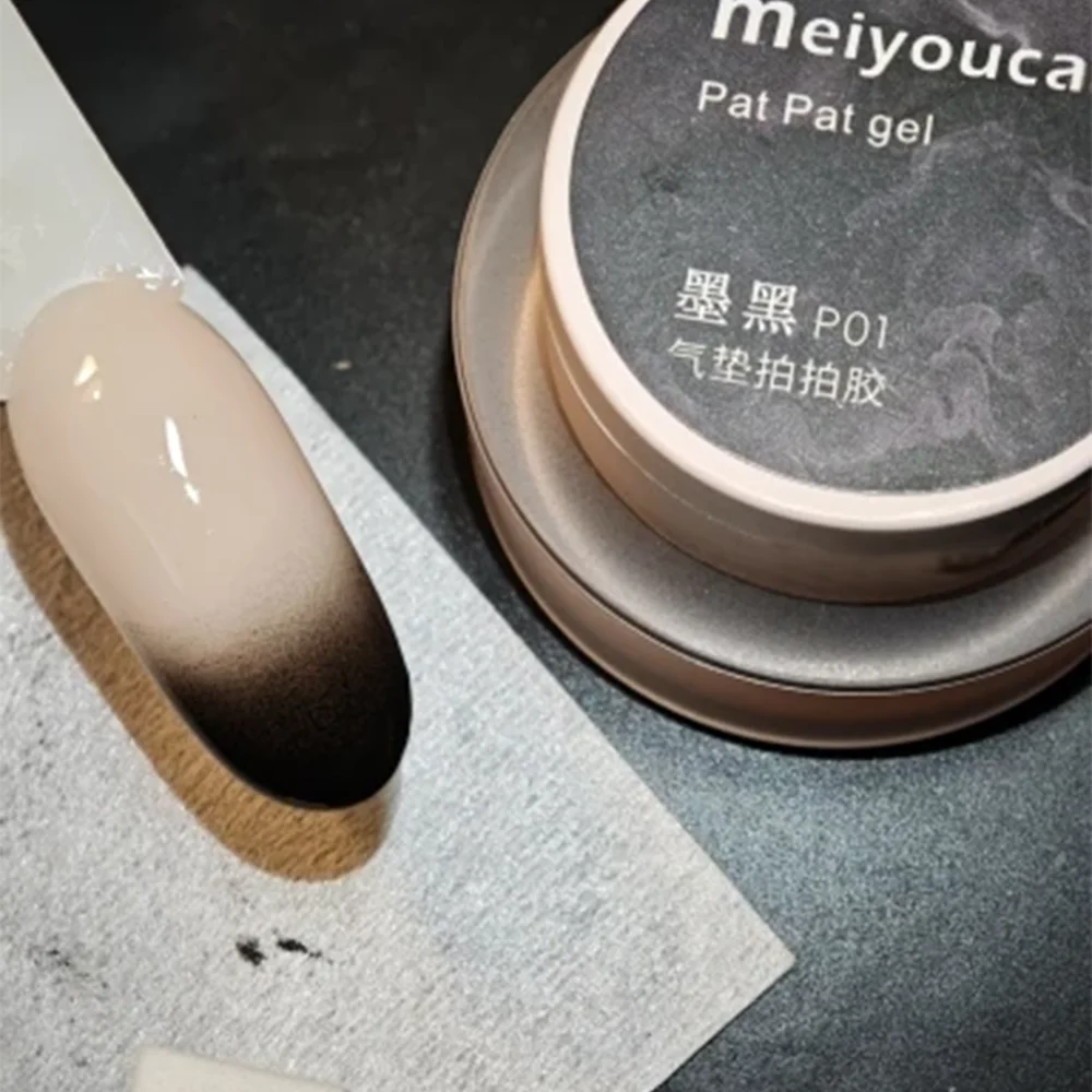 1Jar Black Pat Painting Gel Nail Polish with Air Cushion Gradient Matte Texture Nail Patting Glue Soak Off UV LED Nail Varnish 8