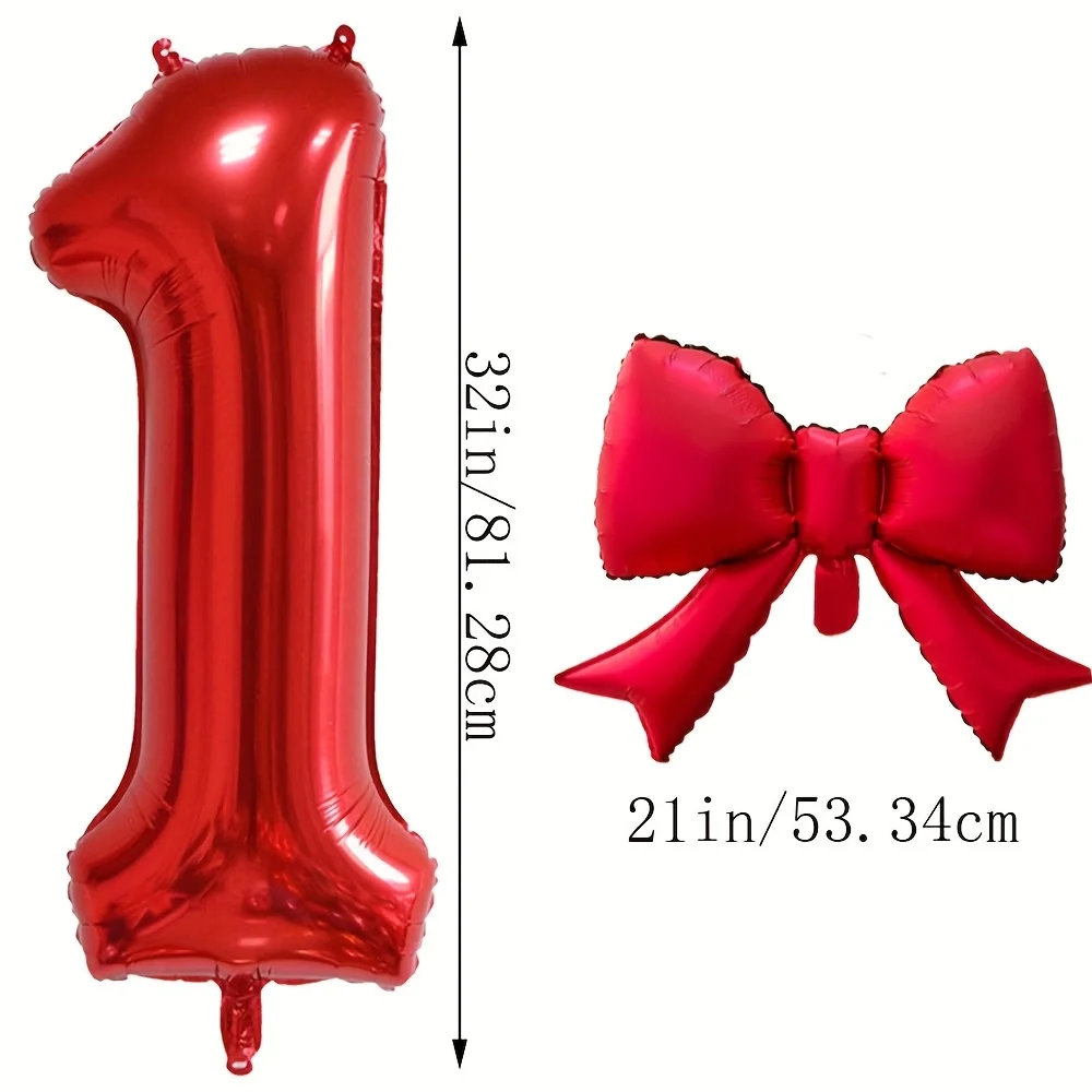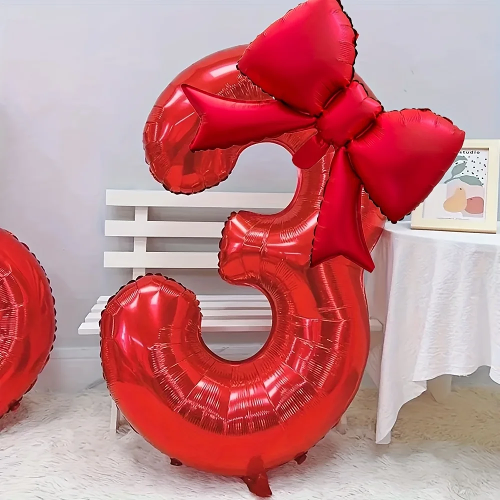 2pcs/set 32inch Red Number Digital Balloon With Red bowknot Foil Balloons for Birthday Party and Anniversary Decoration Gifts
