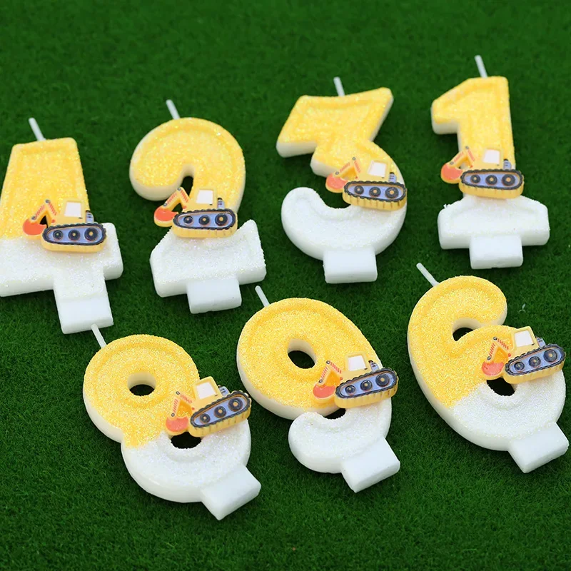 2025 Cross - border Creative Engineering Vehicle Excavator Digital Birthday Candle Cake Decoration Handmade Birthday Candle