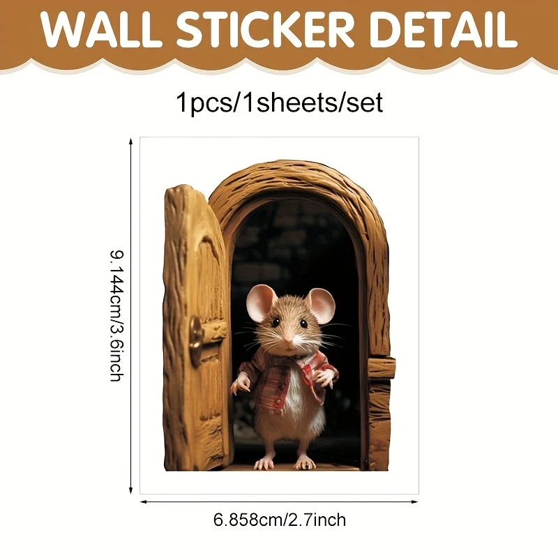 1pc Mouse Open Door Sticker Mouse Home Decorative Wall Art Wall Decor Bedroom Room Wall Decoration 2D Flat Self-adhesive Decal