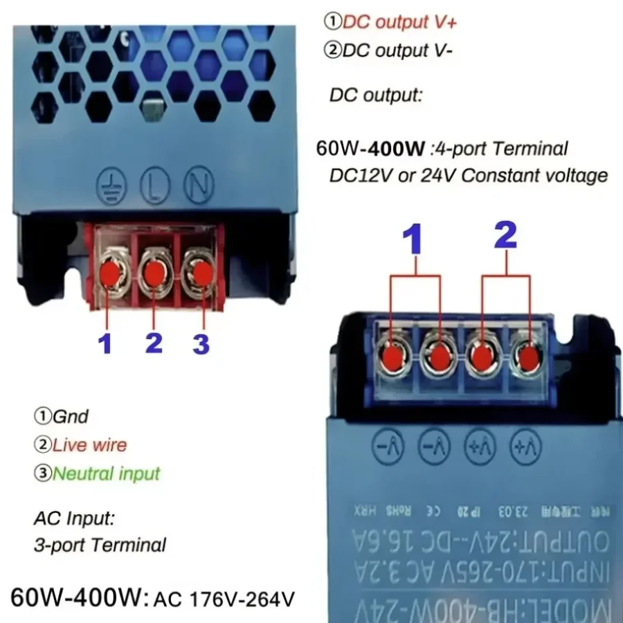 Ultra Thin 12V/24V LED Power Supply Adapter 60W 100W 200W 300W 400W Lighting Transformer 5A 12A LED Strip Switch Driver Lamp
