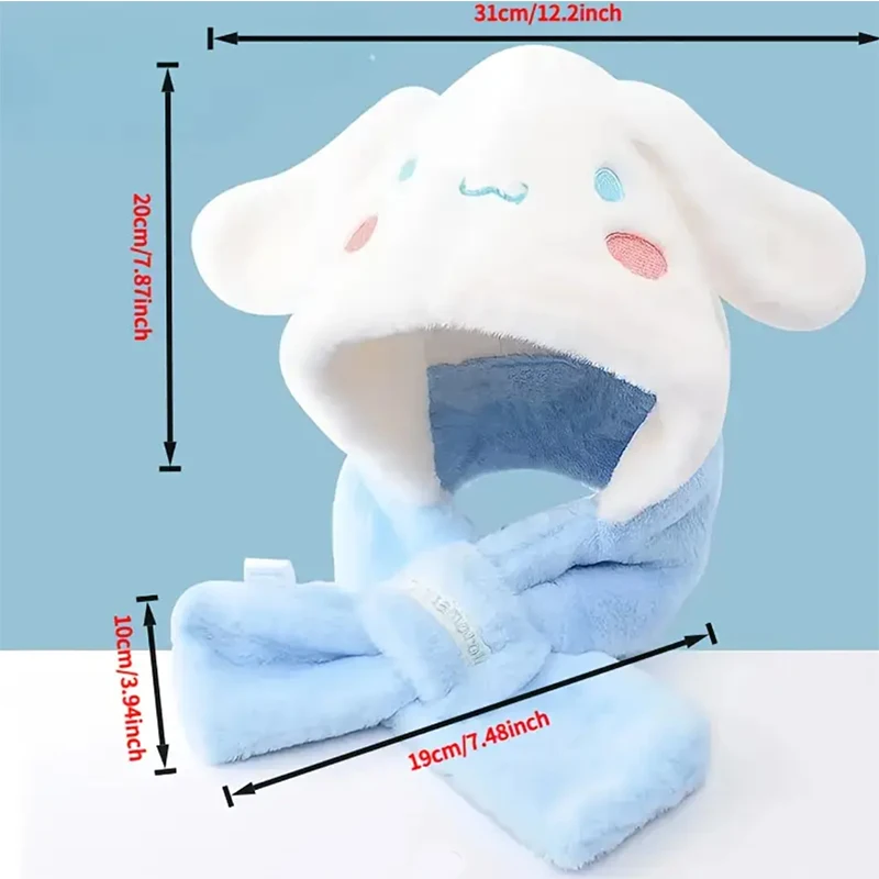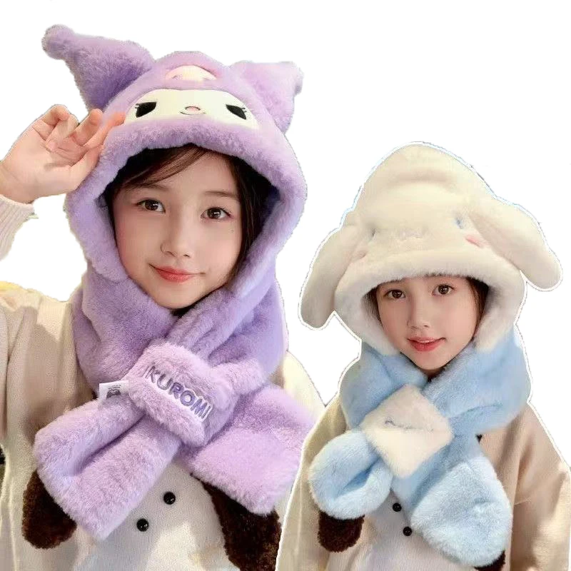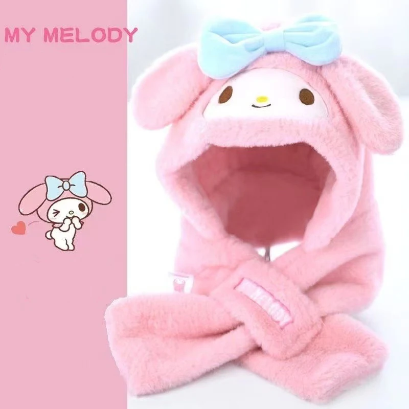 Kawaii Sanrio plush integrated scarf and hat, soft and warm, the perfect gift for autumn and winter