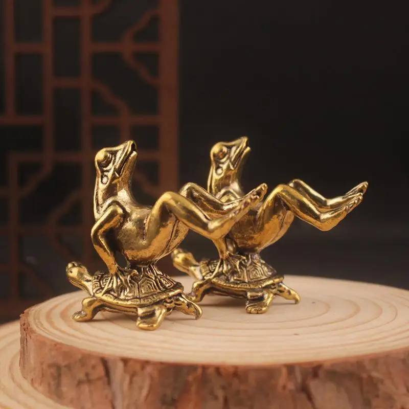 Pure Copper Solid Pure Brass Turtle Back Frogs Ornament Turtle Frogs Tea Pet Handle Antique Bronze Decoration Small Ornament