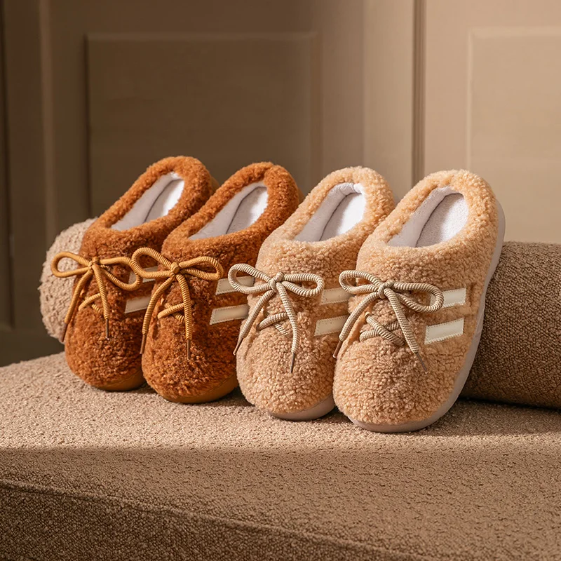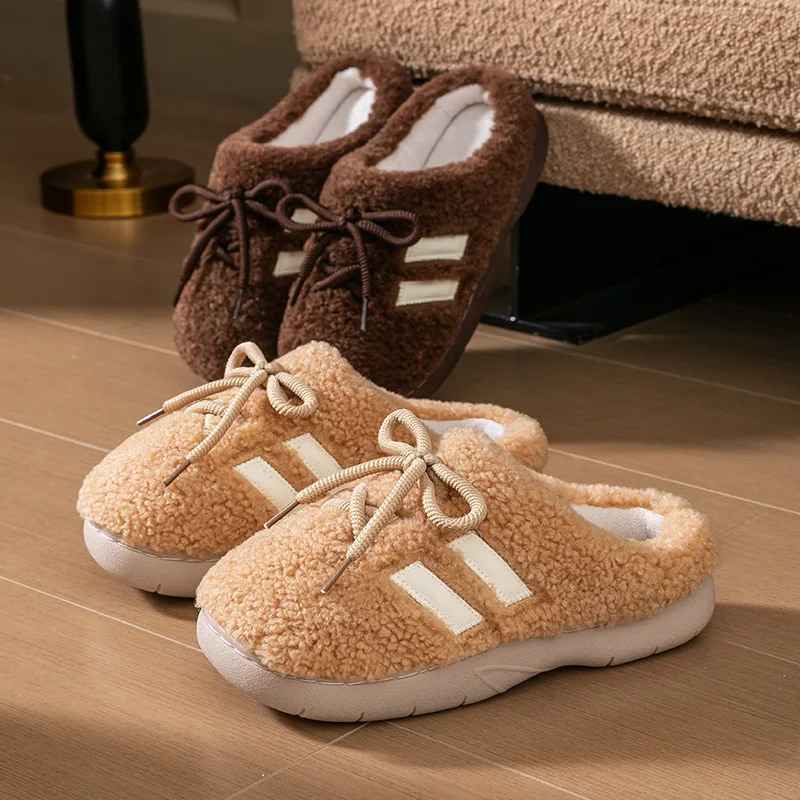 Thick soled cotton slippers for women, autumn and winter home decor, indoor new style, plush warm slippers