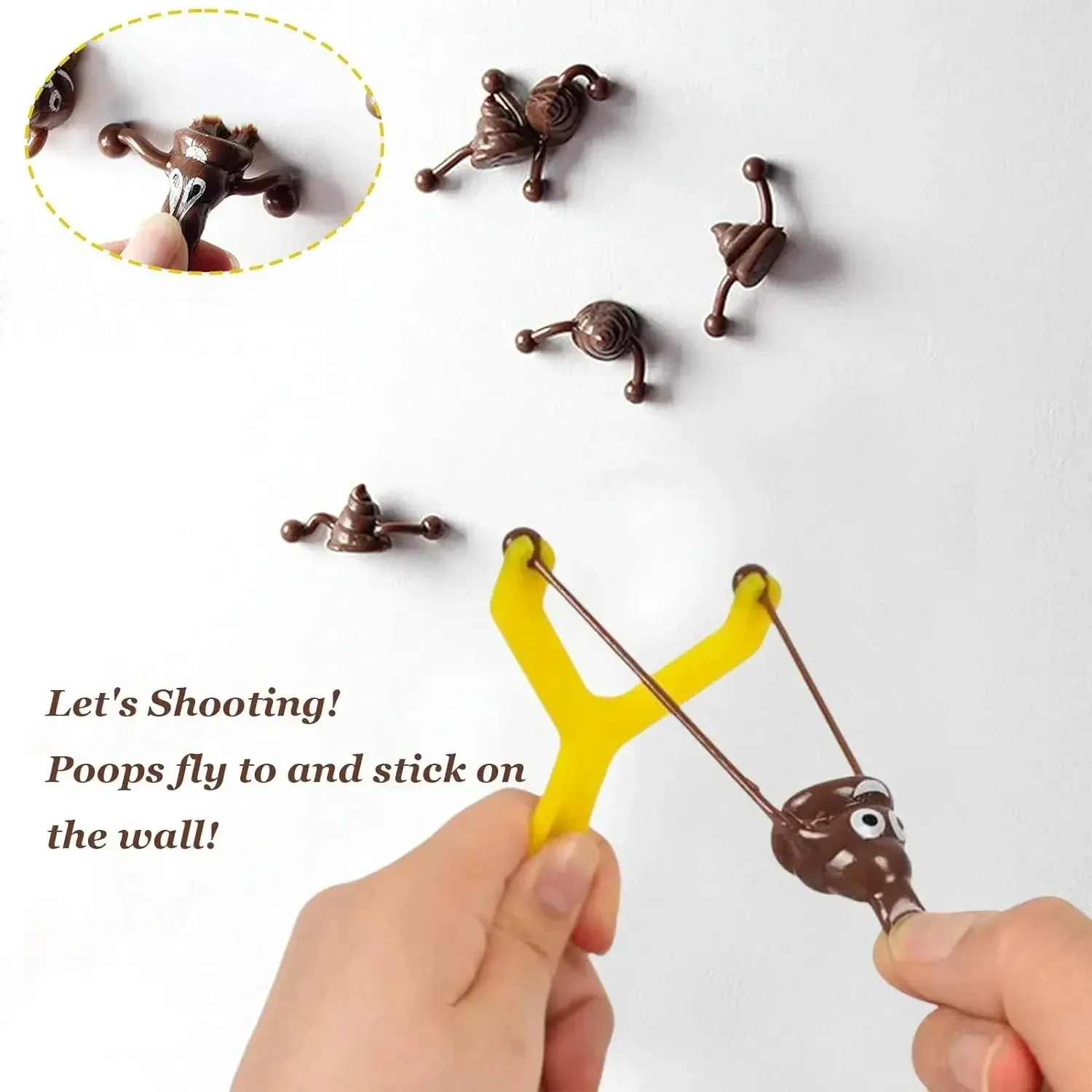 12pcs Mini Rubber Slingshot Poop Slingshot Toy Flying Poop Toys Smiling Stretchy Toy Stress Relief Toy Gift for Kids Party