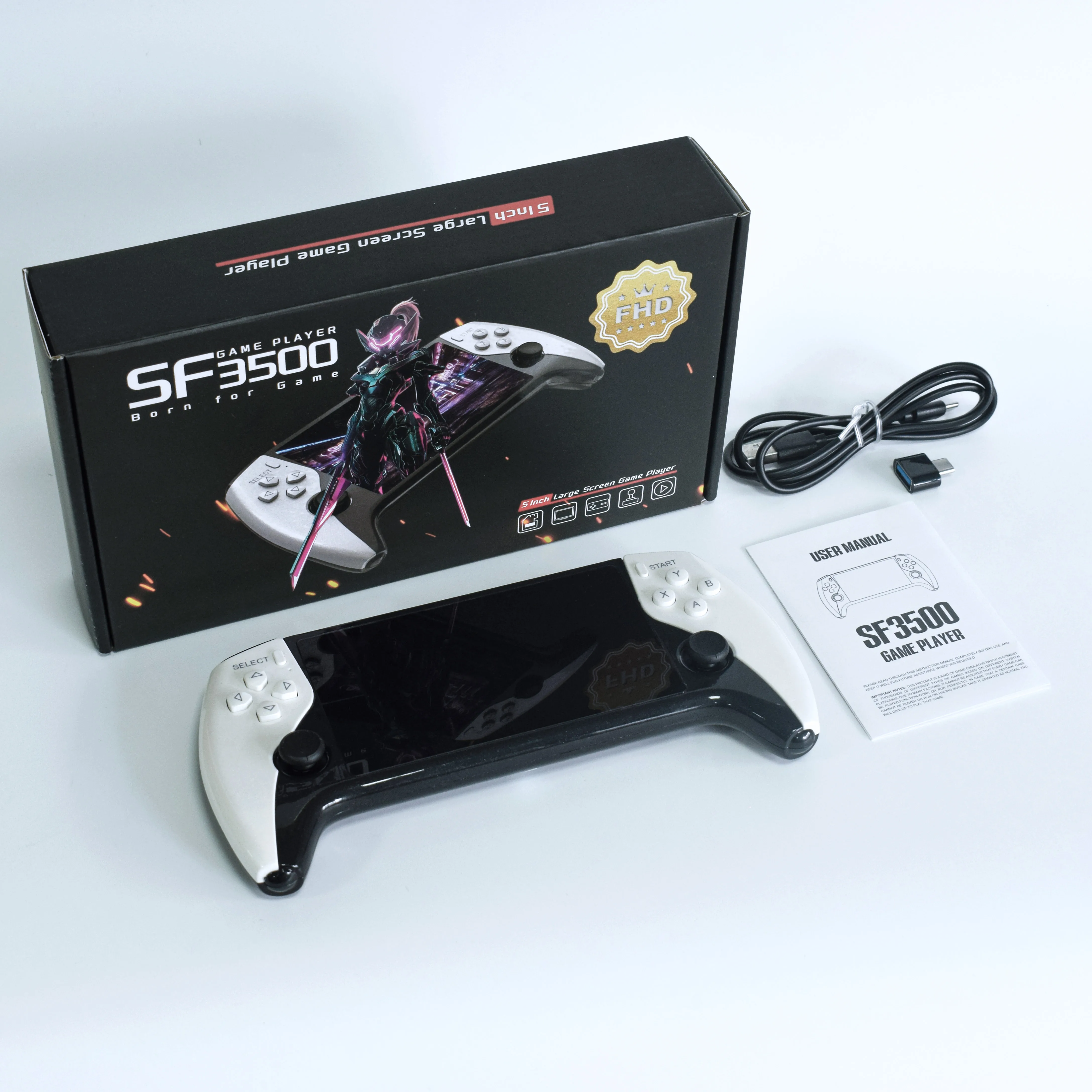 SF3500 handheld game console, 5-inch IPS large screen portable game console, built-in 20000+games, supports FHD FHD output