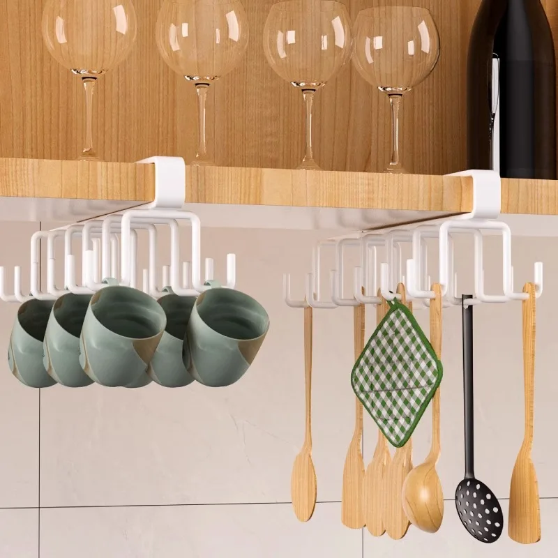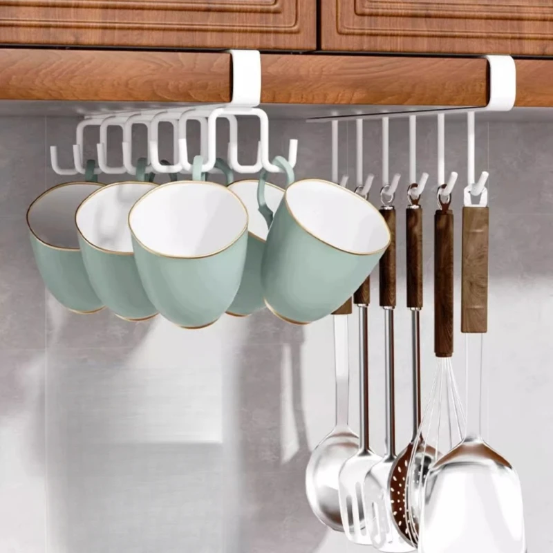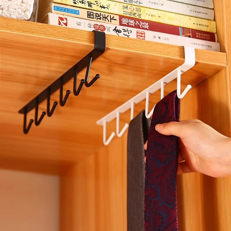 Household Kitchen Cabinet Bottom Shelf Hanging Hook, Non Perforated Cloth Rack, 6-Hook Organizing Rack, Spatula Hanging Rack