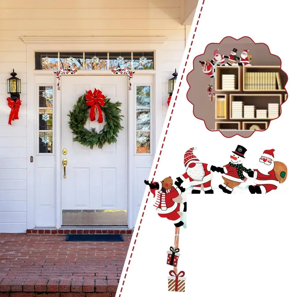 2026 New Wooden Santa Door Corner Decor Snowman Reindeer Pendant Christmas Cartoon Door Frame Decor Party Christmas Ornament