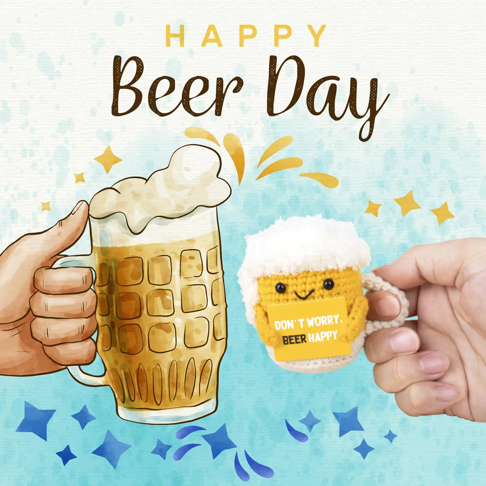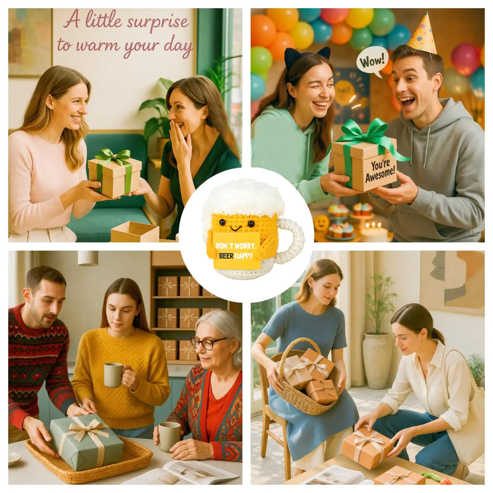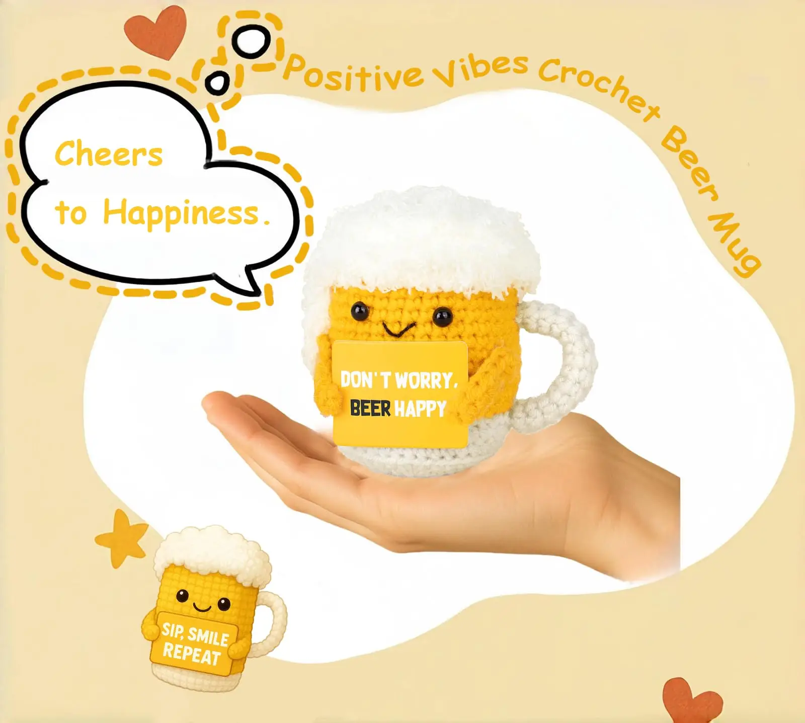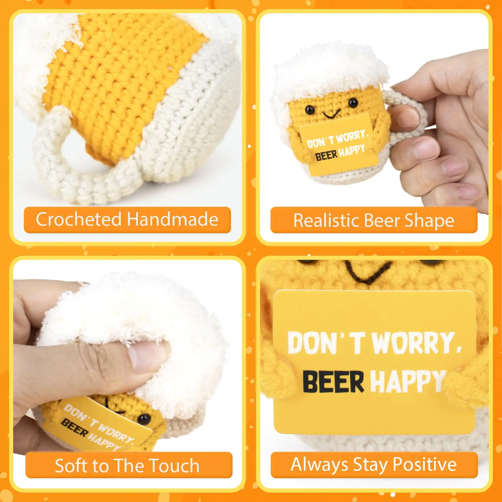 Positive Energy Crochet Beer Gift, Comes with an Encouraging Affirmation Card, Handmade Emotional Positive Support Beer, Thoughtful Stress-Relief Gift for Women and Men, Cute Birthday and Desk Decoration