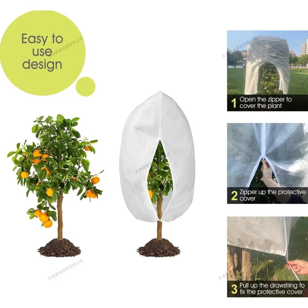 Plant Covers Freeze Protection Frost Cloth Blankets for Outdoor Plant with Zipper Drawstring for Shrubs Potted Plants in Winter
