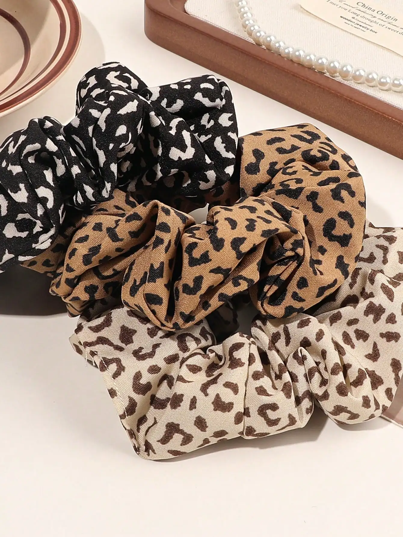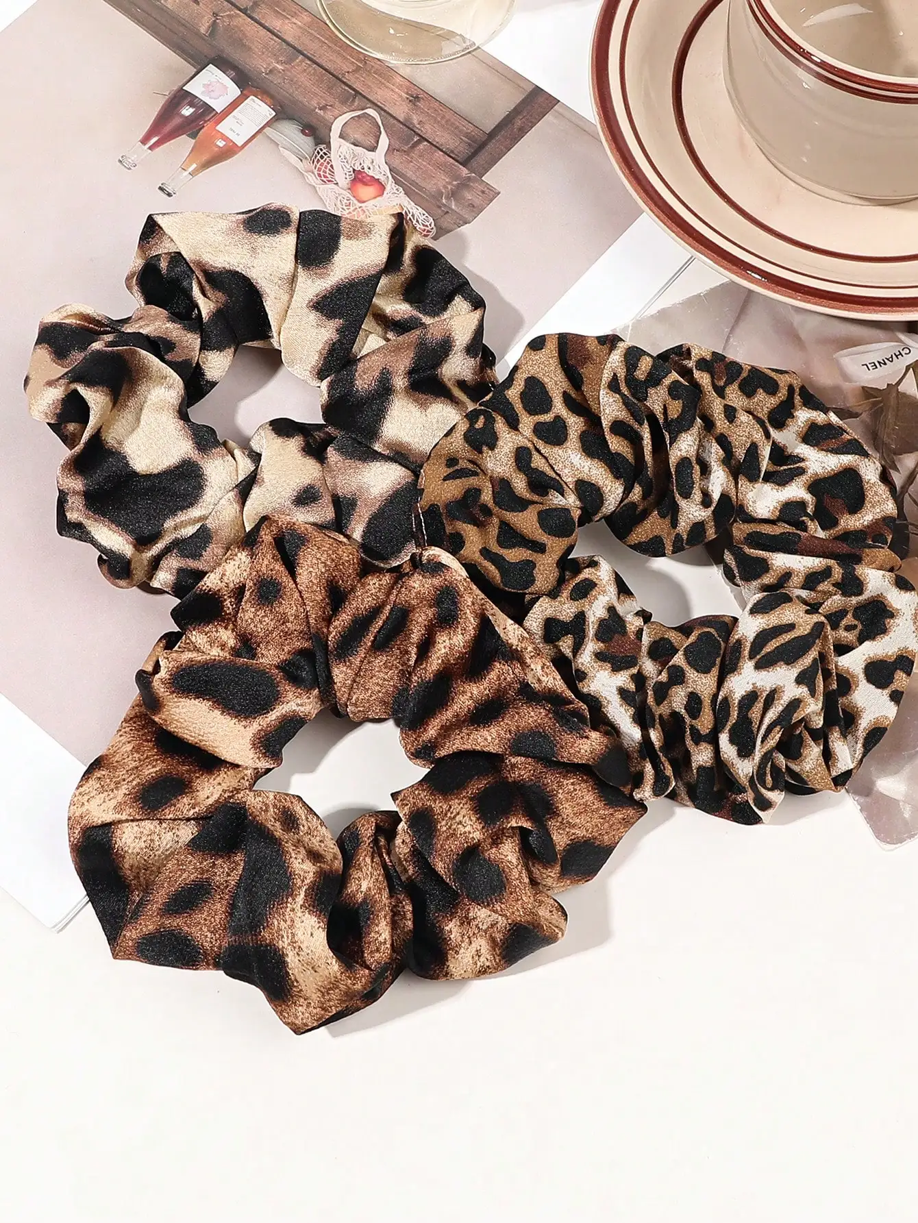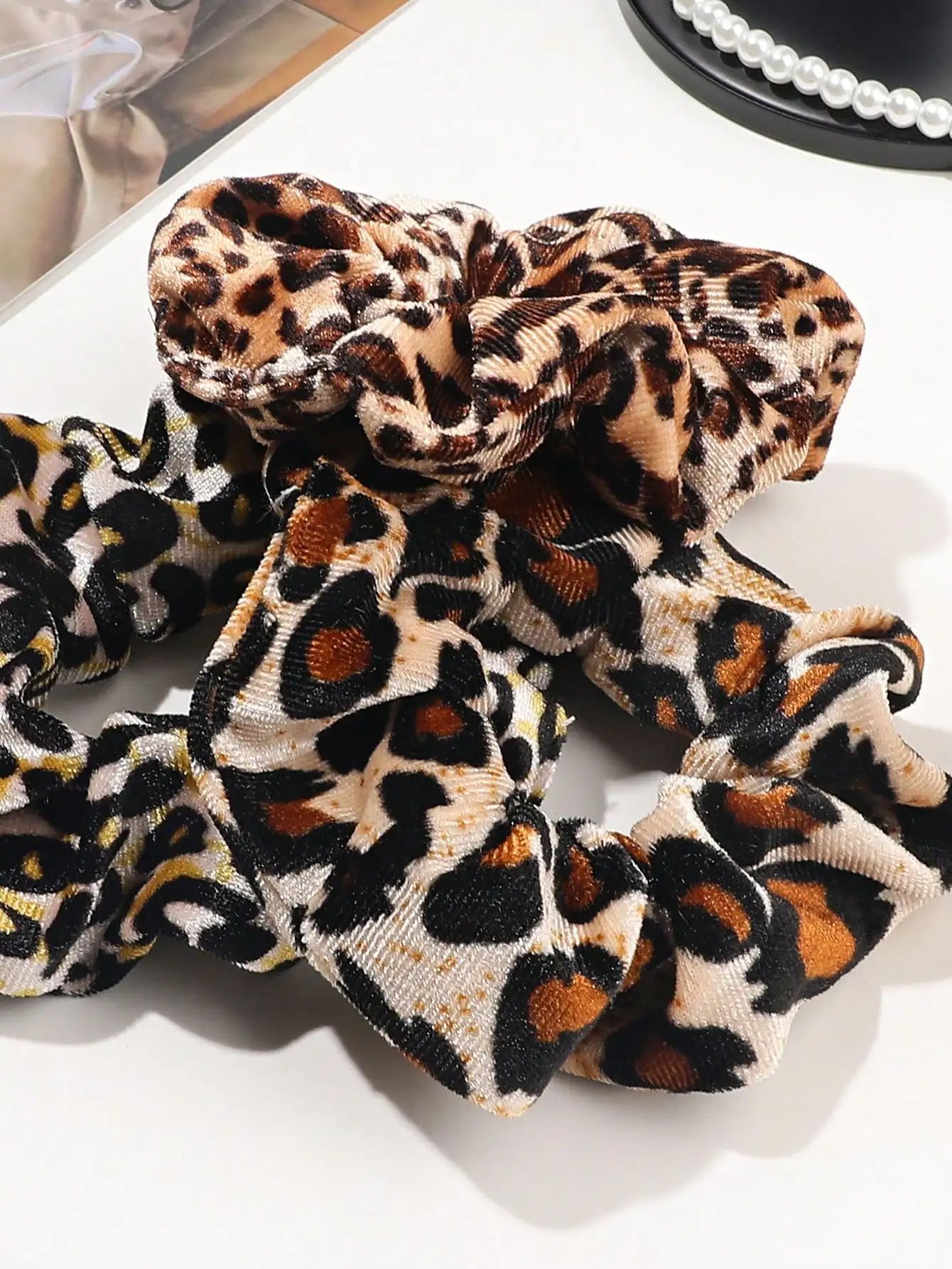 3/6/12PCS Leopard Velvet and Silk Satin Scrunchies Hair Ties Hair Elastics Bands Ponytail Holder Hair Accessories for Women Girl
