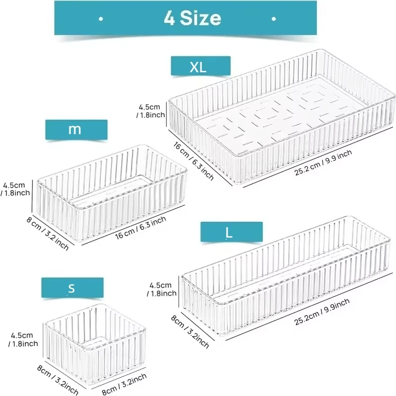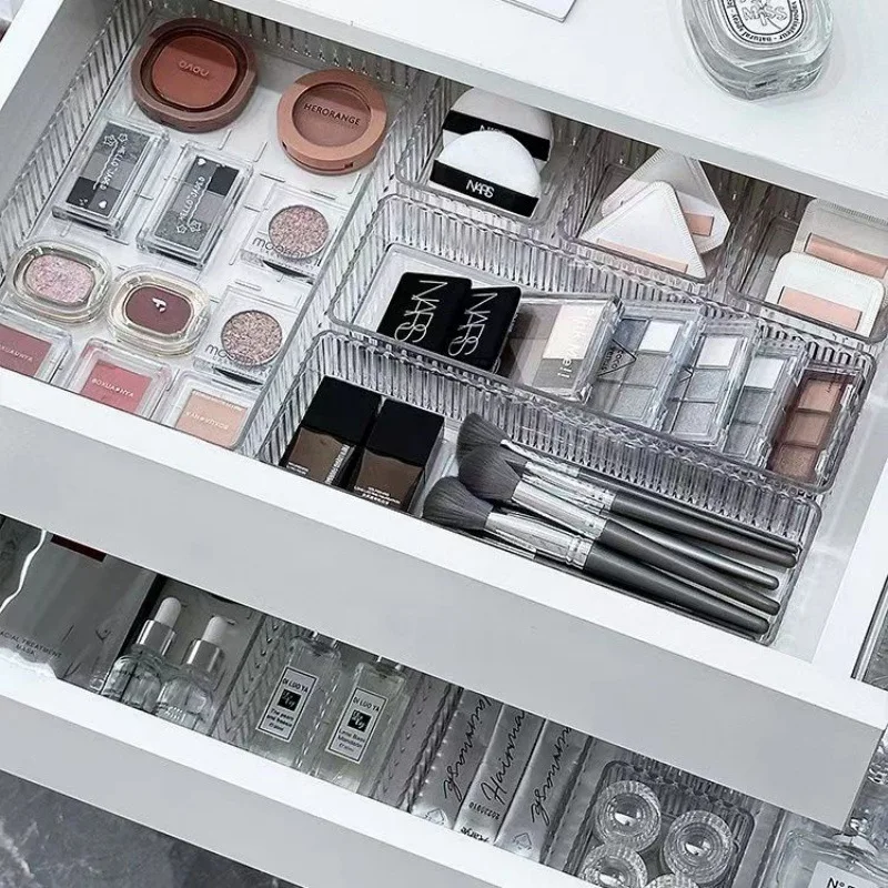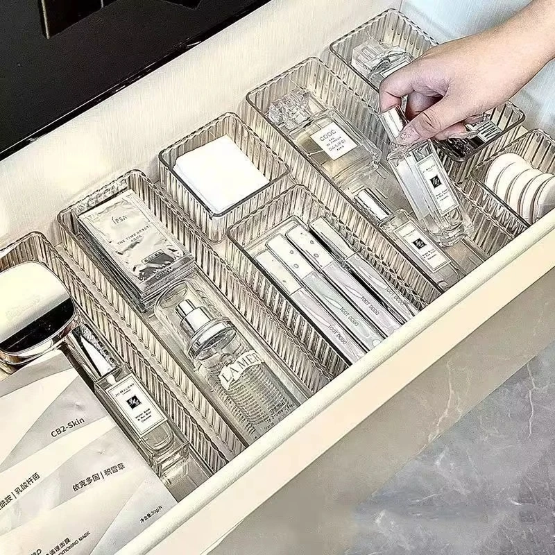 Transparent Modular Drawer Organizer Set Multi Use Storage Trays for Makeup Skincare Kitchen Tools Bathroom Vanity Organization