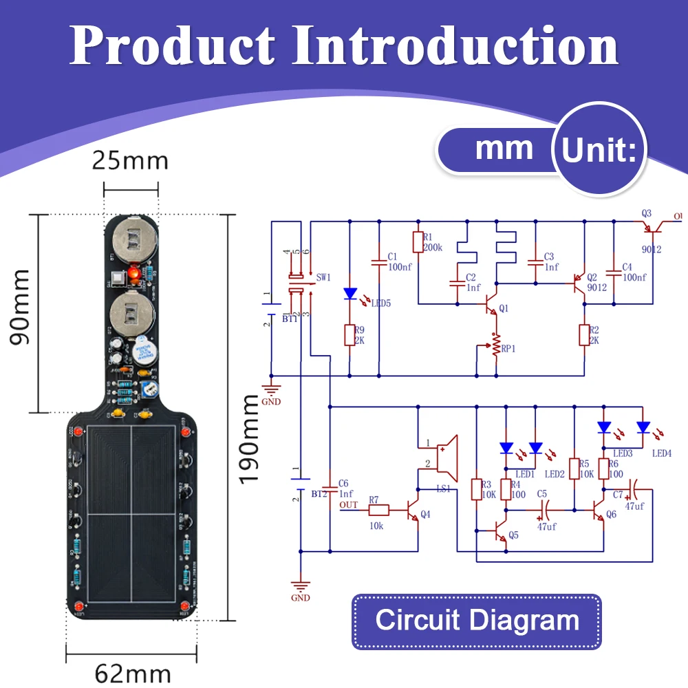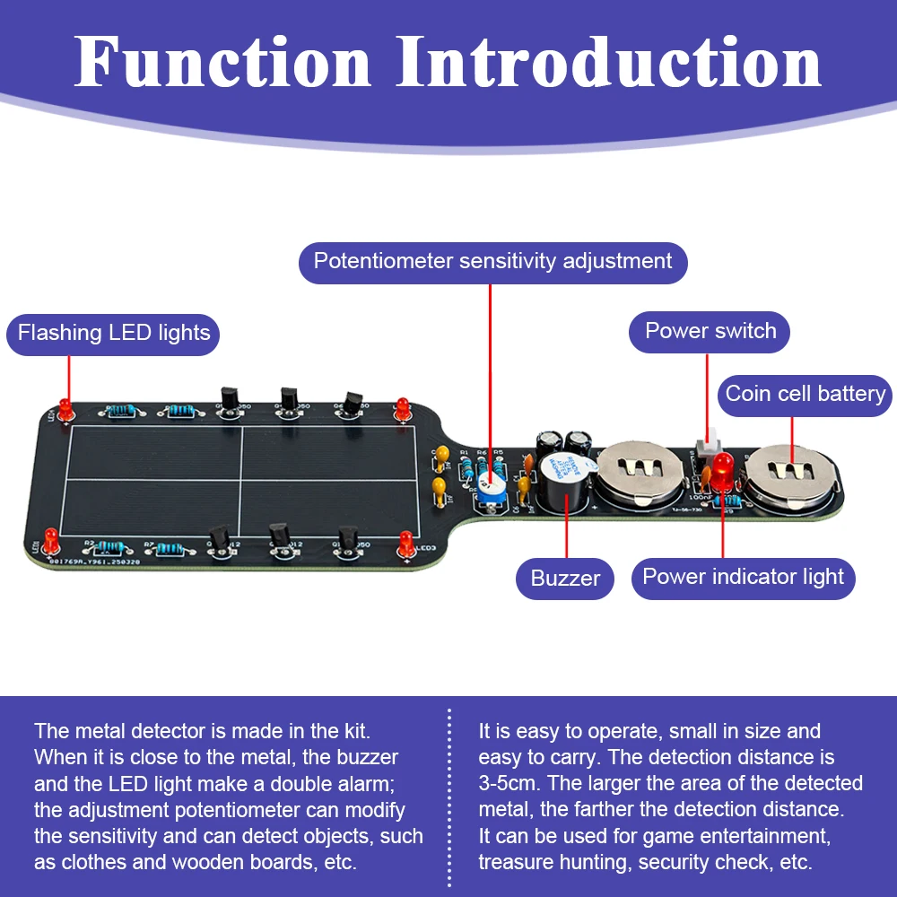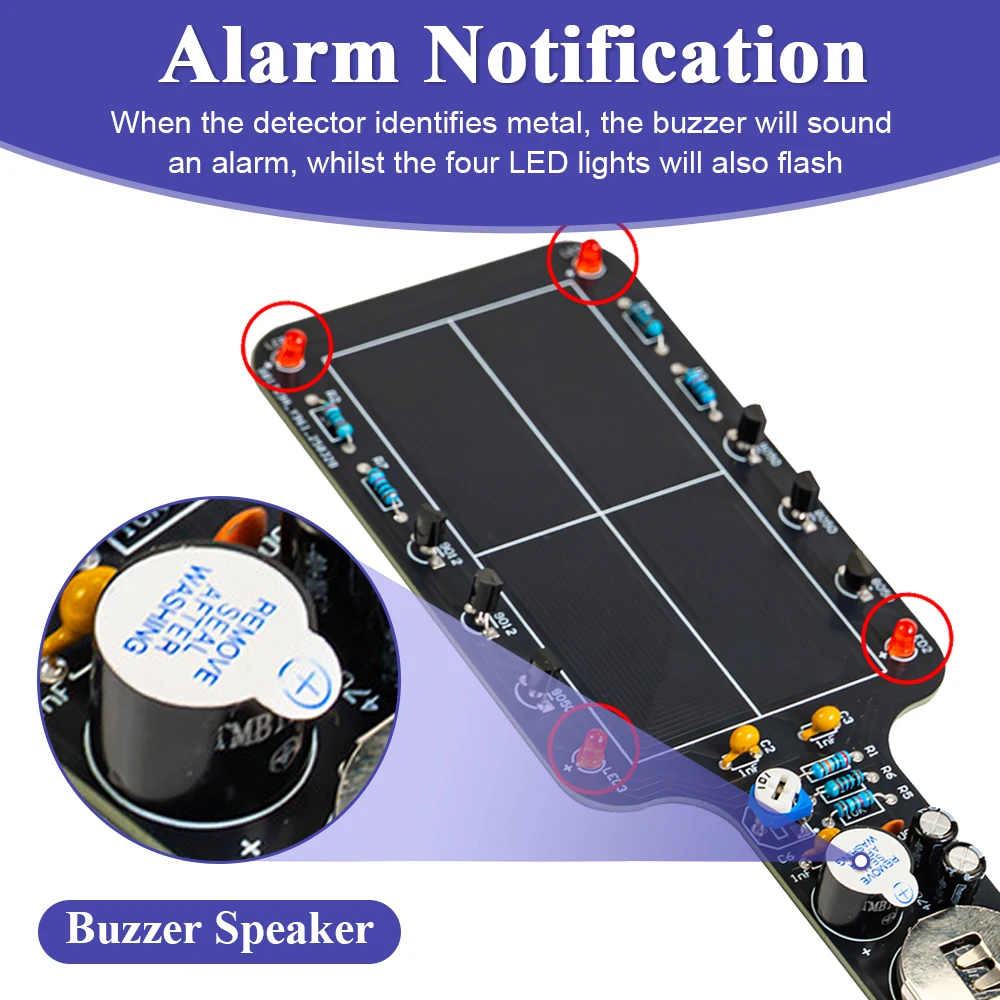 DIY Metal Detector Kit Buzzer Alarm with LED Lights Electronic Soldering Project Circuit Board Building Kit DC6V