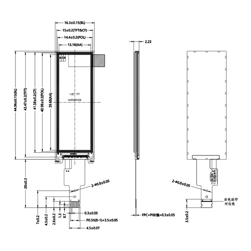 1.68 Inch Bar Type TFT LCD Display, 142x428 Resolution, NV3007 Driver, 4-Line SPI, 8-Pin Plug-in Color Screen LCD Module