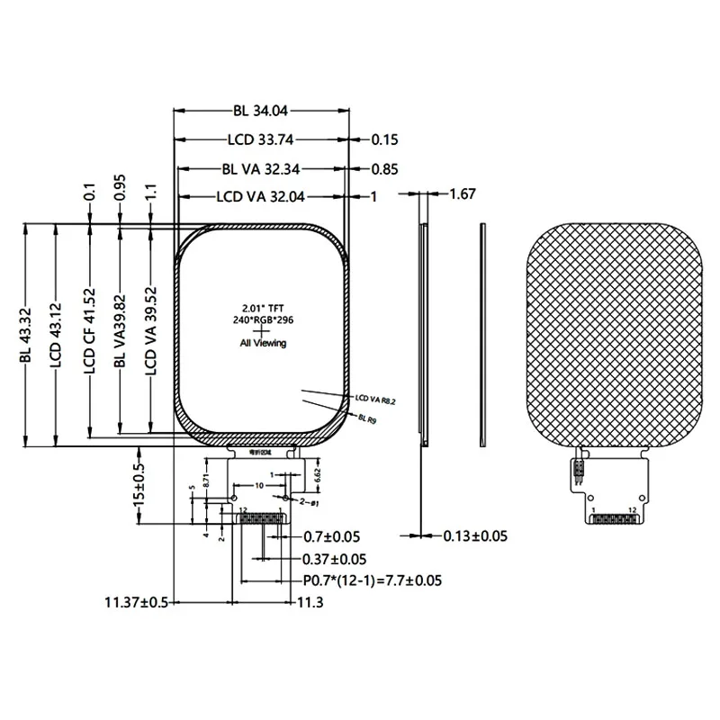 2.01 Inch JD9853 TFT LCD Display Module, 240x296 Round Corner SPI Color Screen LCD Panel Module Small LCD Module