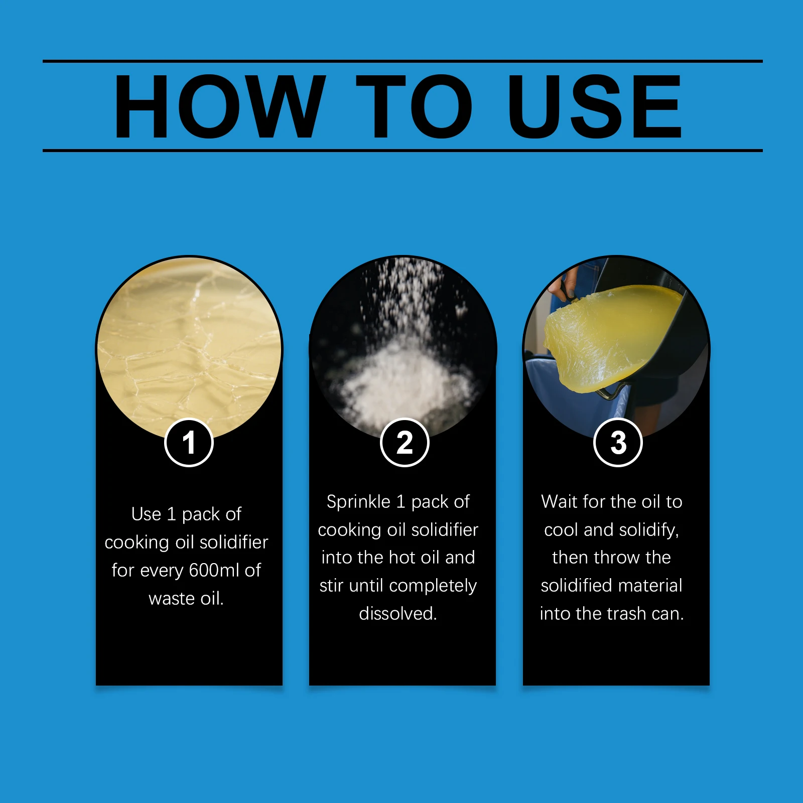 Natural Cooking Oil Solidifier Powder Grease & Fry Oil Hardener for Easy Disposal Vegetable Canola Oil Waste Solution coagulant