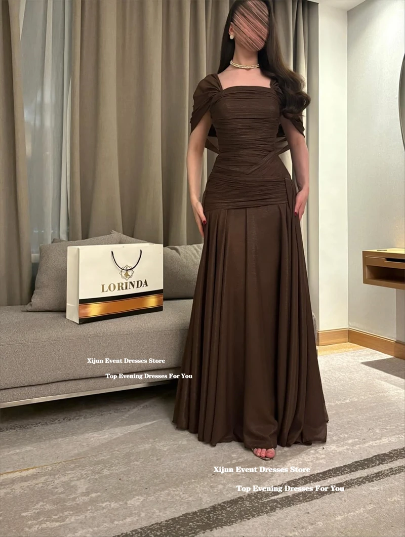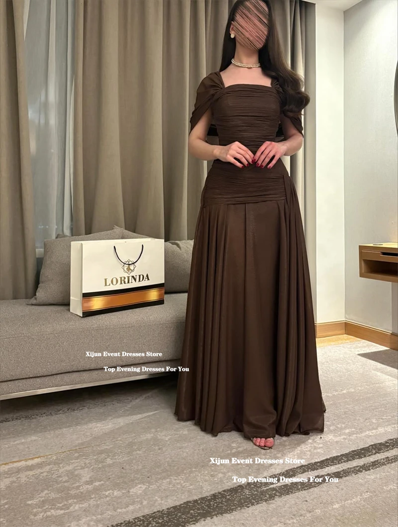 Xijun Elegant Brown Chiffon Evening Dresses Off The Shoulder A-Line Formal Prom Dresses Pleated Saudi Arabia Prom Gown Customize