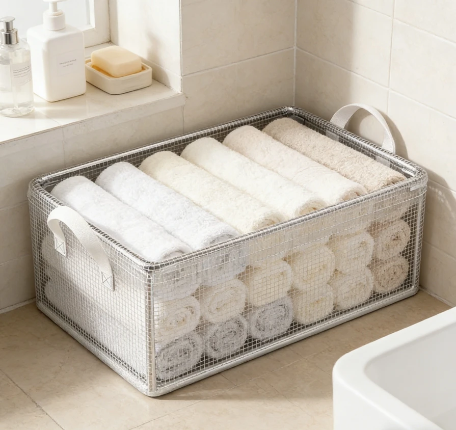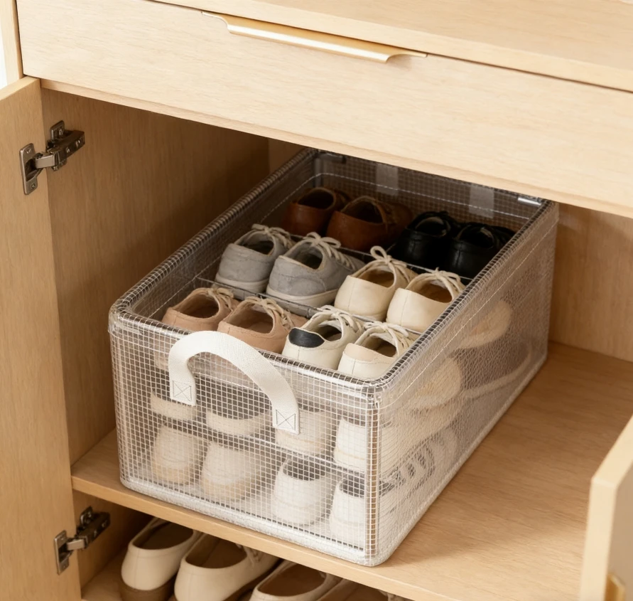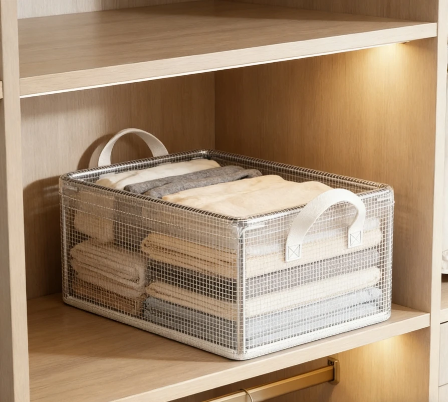 Transparent PVC Foldable Storage Bins with Solid Steel Frame, Waterproof Dustproof Closet Organizer, Mesh Storage Basket for Clo