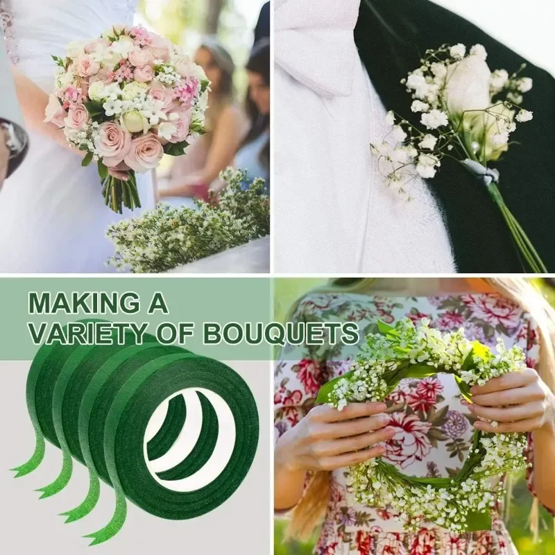 10/1Rolls Green Bouquet Floral Tapes Self-adhesive Stamen Wrapping Paper Tape DIY Flowers Decor for Florist Wedding Party Props