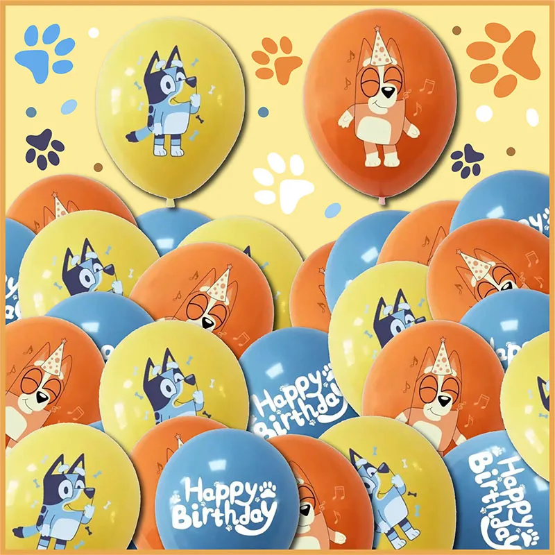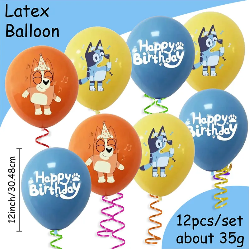 12Pcs/set Bluey Themed Cartoon Cute Balloons Set Supplies for Baby Shower Cake Birthday Family Bachelorette Party Decorations