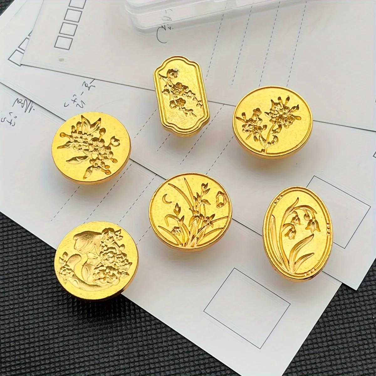 6-piece floral wax seal set with detachable wooden handle - vintage style, suitable for wedding and birthday party invitations