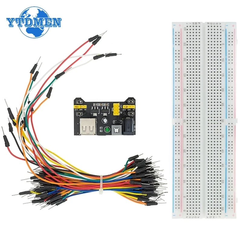 1set Breadboard MB102 Power Supply Module 3.3V/5V + MB-102 830 Points Solderless Prototype Bread Board Kit +65 Jumper Wires DIY