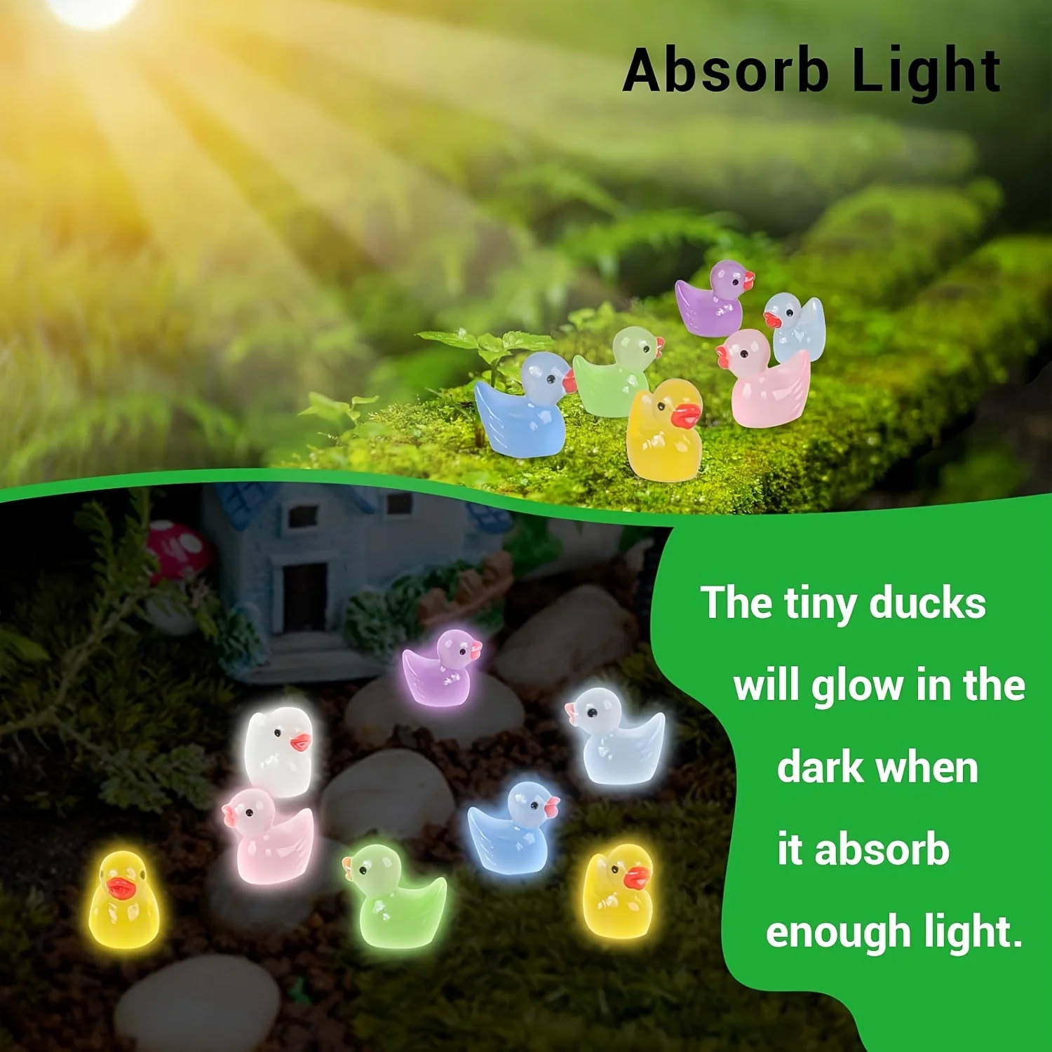 30/60/100PCS Luminous Mini Duck Micro Landscape Access Miniature Figurines Fairy Home Decoration Glow in the Dark Mixed Style
