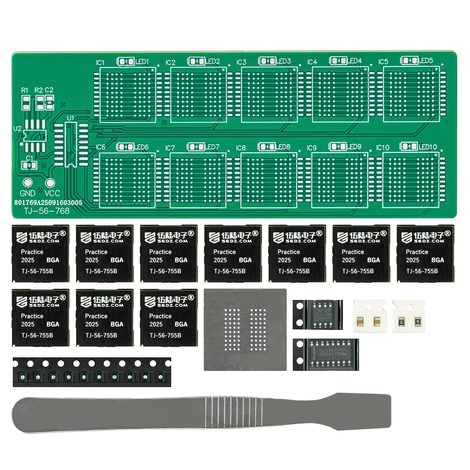 BGA Chip Soldering Practice Board Kit Decimal Flowing Lights Teaching Practical Training Soldering Practice Loose Parts