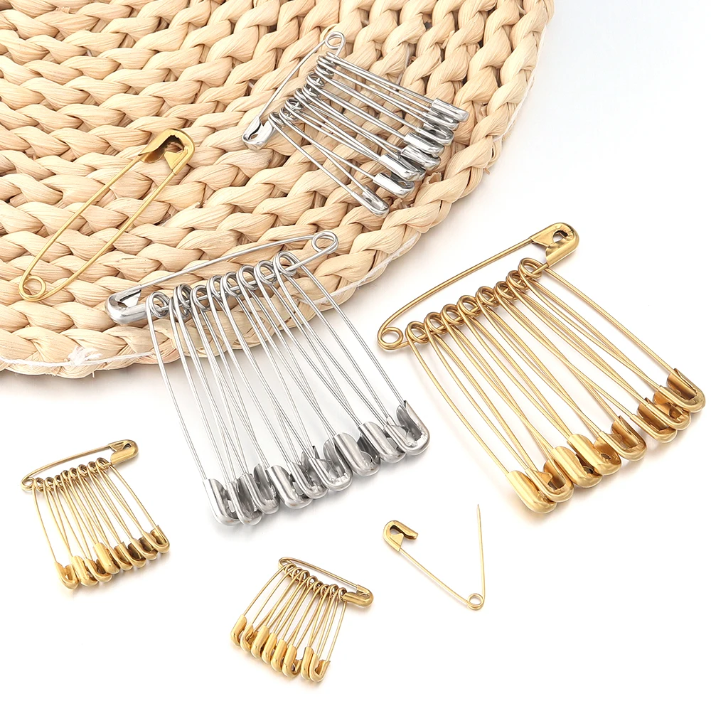 10Pcs Safety Pins 20/23/28/32/38/46/56mm Gold Silver Color Durable Stainless Steel Safety Pins For DIY Crafts Sewing Accessories