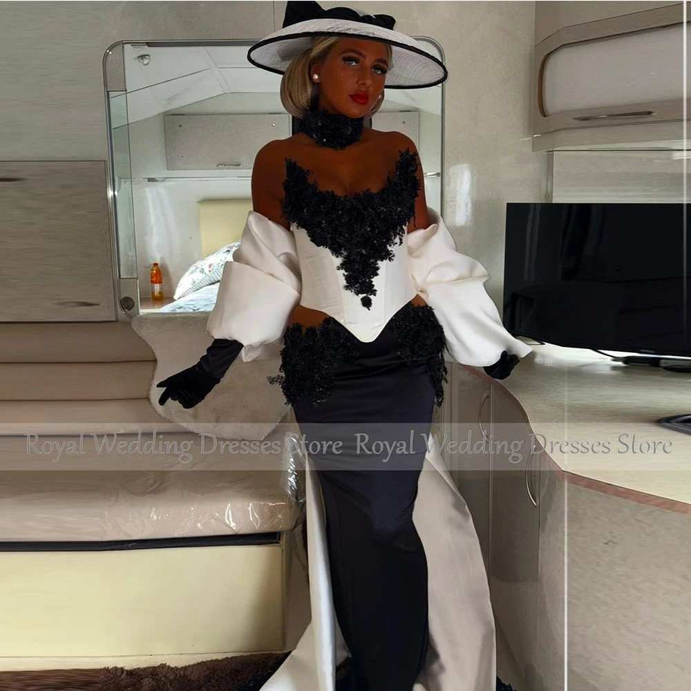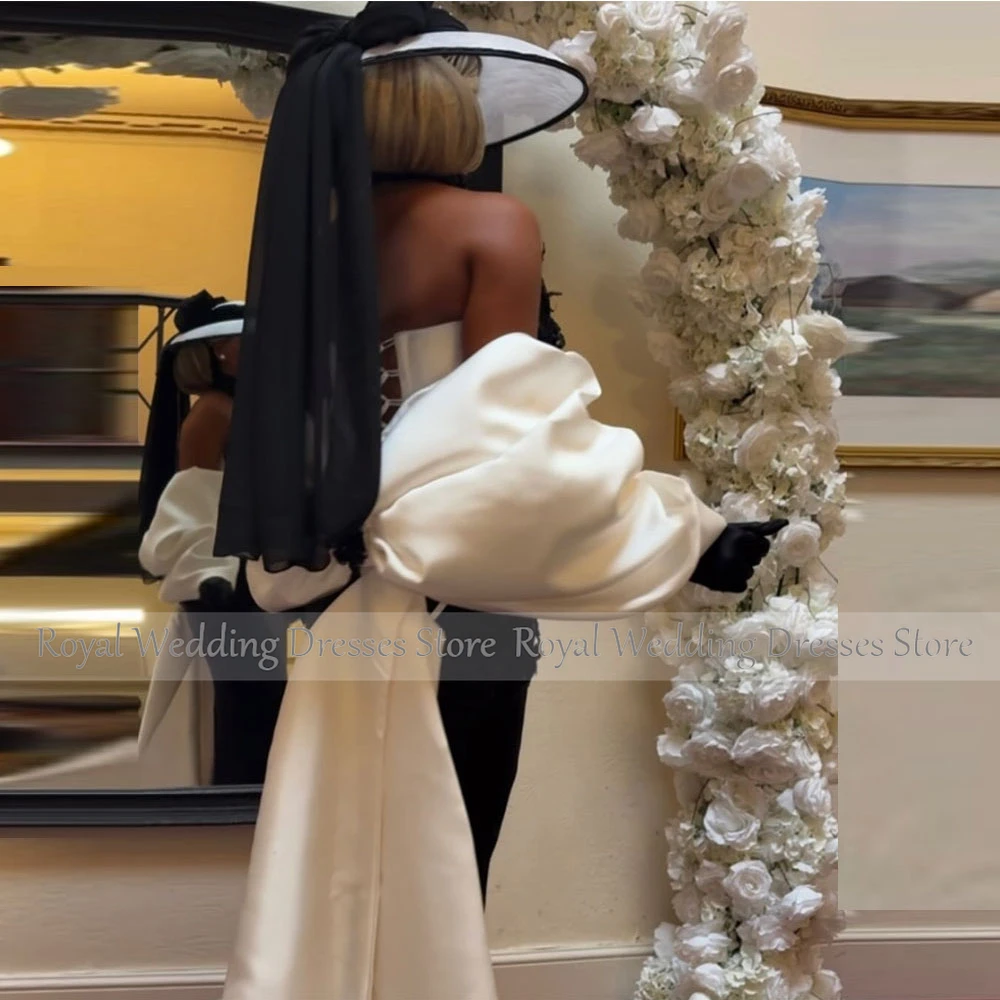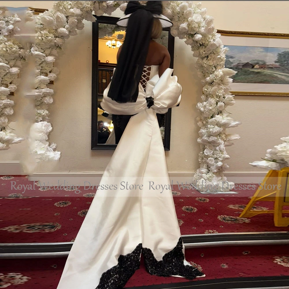 Strapless Satin Cocktail Dress Sheath Cocktail Gown For Women Appliques Beading Formal Wedding Party Gown With Train