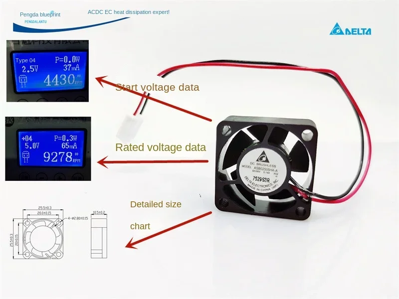 pa Delta Silent ASB02505HA-A Hydraulic 2510 5V 0.14A 2.5cm Micro Cooling Fan25*25*10MM