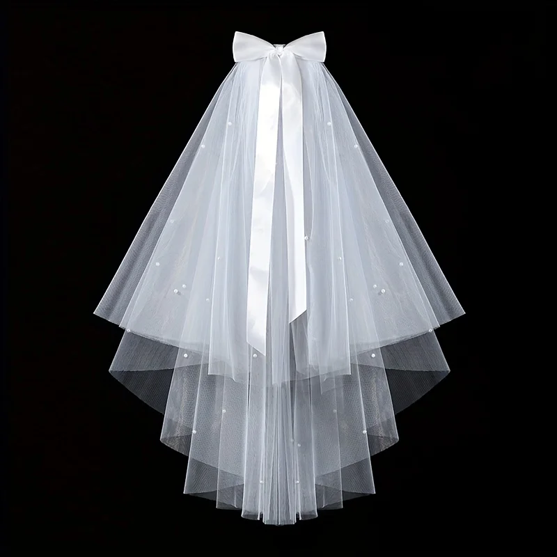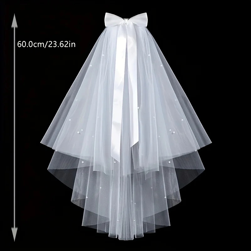 Vintage Bridal Veil with Embellishments and Satin Bow Ribbon-Romantic Sheer Tulle Design for Engagements, Proposals, Photography