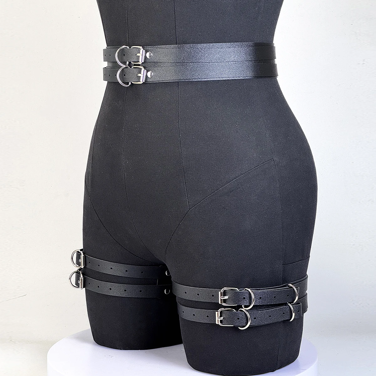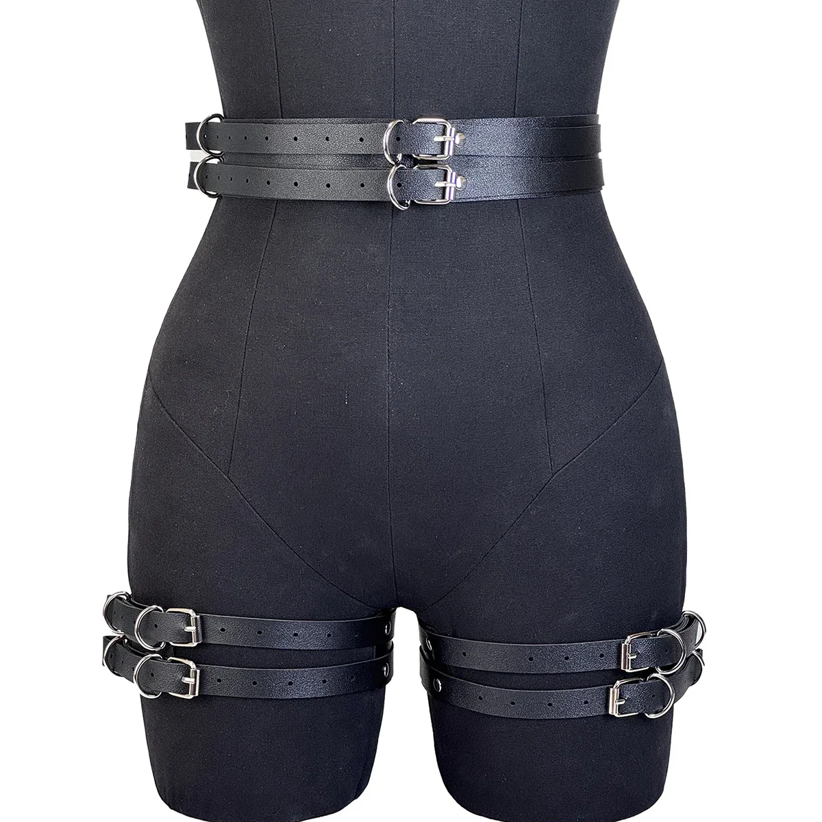 Women Thigh Garter Belt Leather Lingerie Leg Straps Bdsm Bondage Women Handcuffs Goth Fetish Clothing Festival Rave Outfit