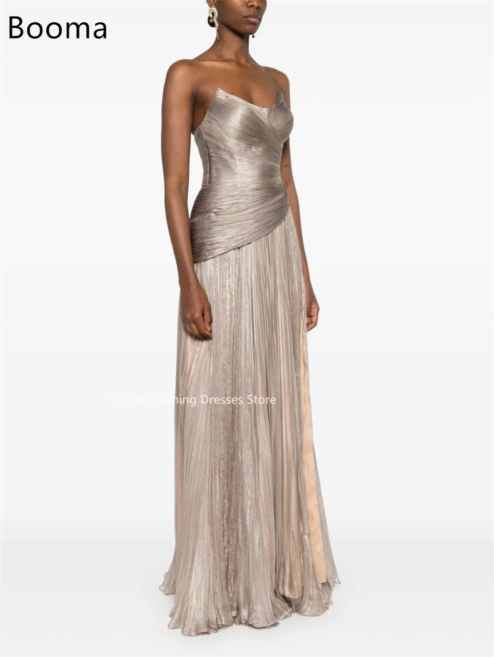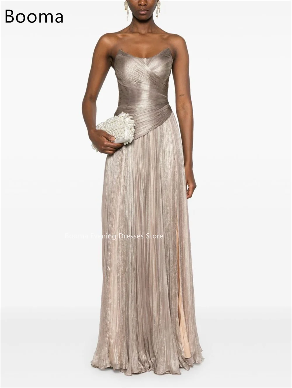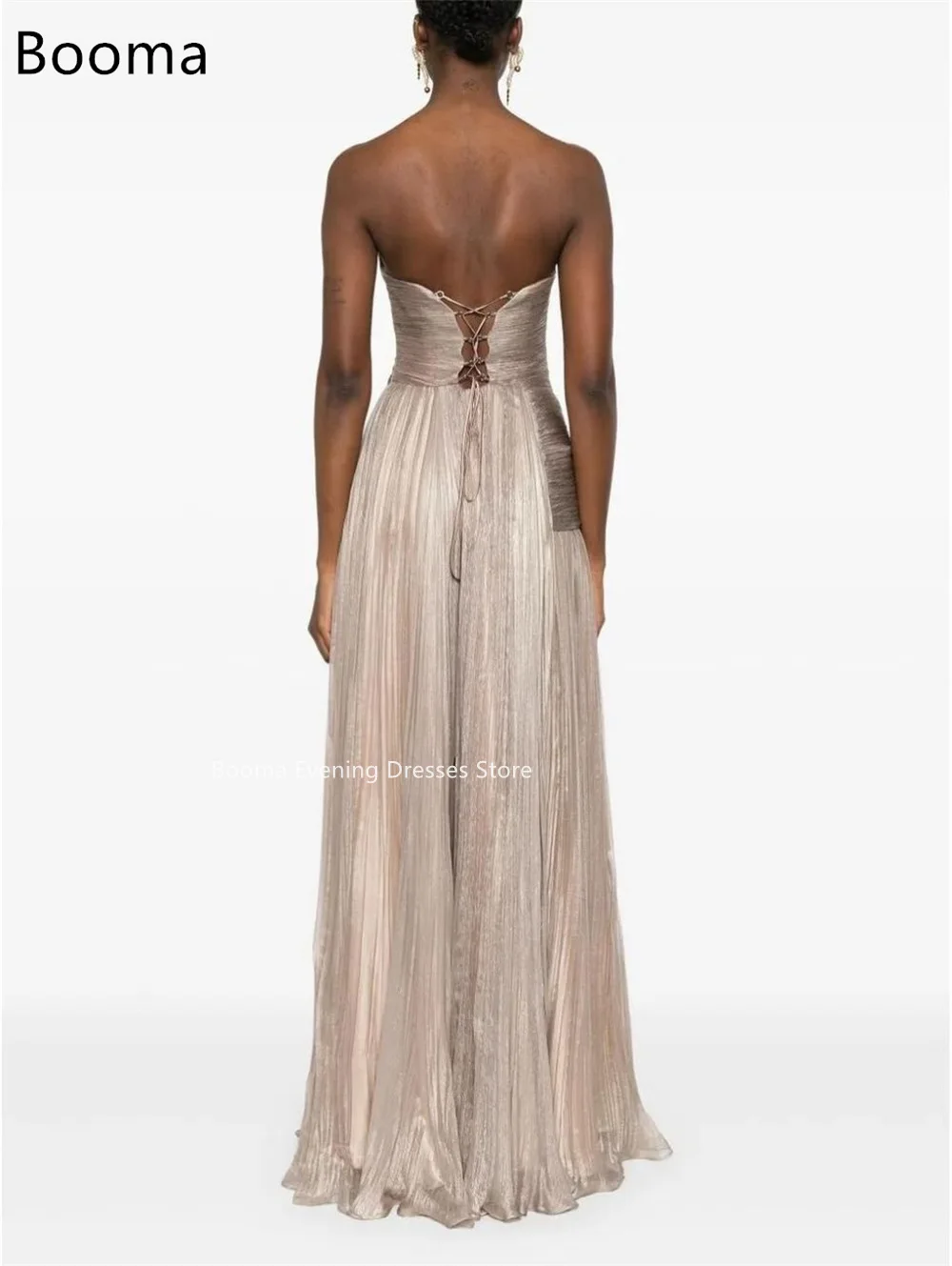 Booma A-Line Strapless Shiny Pleat Sleeveless Evening Dresses Formal Party Gowns for Women Corset Elegant Prom Gown Customize